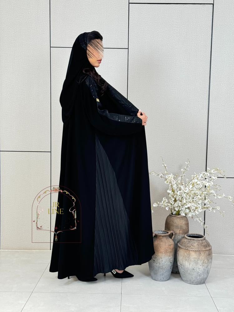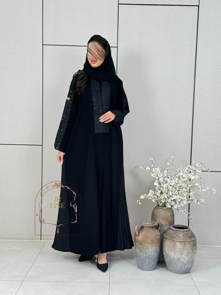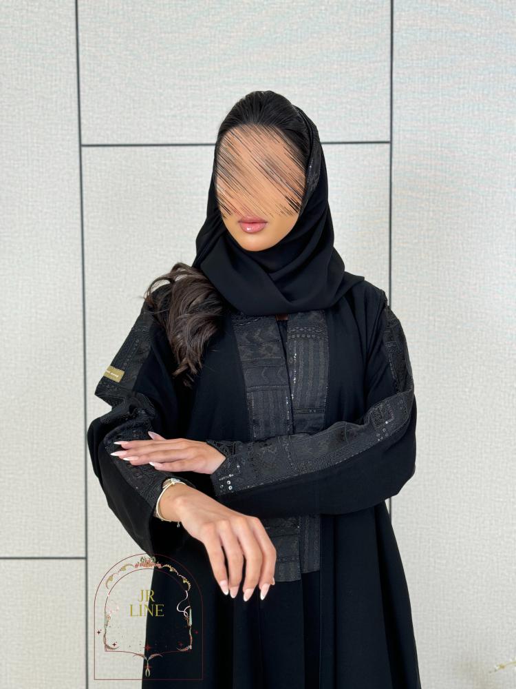 عباية نجد بقماش  كريب ملكي تدخيلات روكاما مطرز  اسود