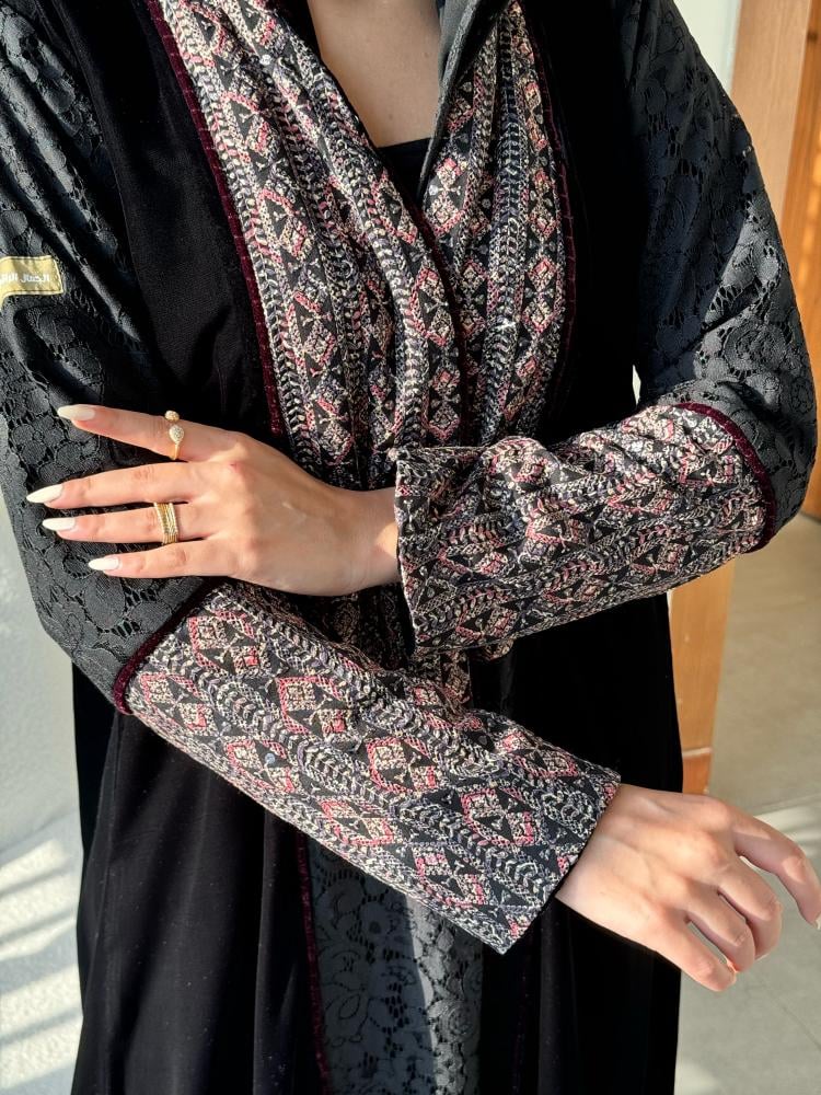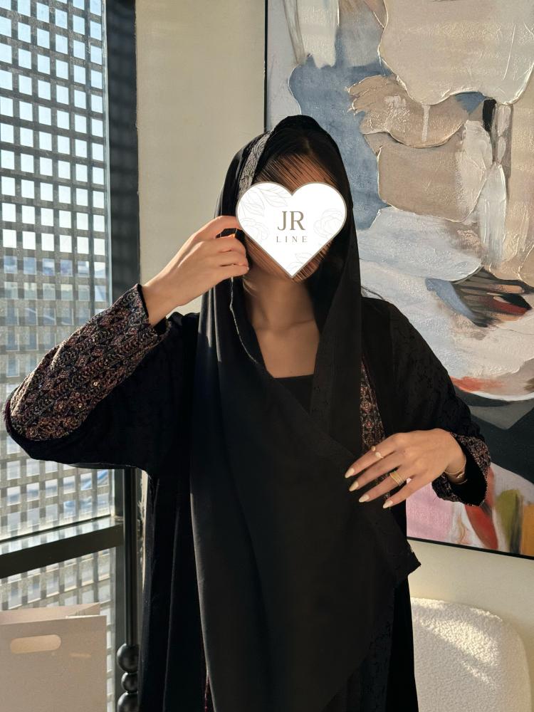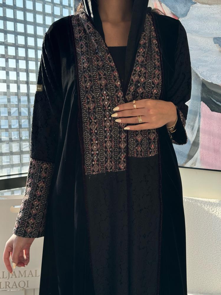 تشكيلة شتاء 2024 - عباية اكتمال مخمل تدخيلات دانتل تطريز فرنسي - بني