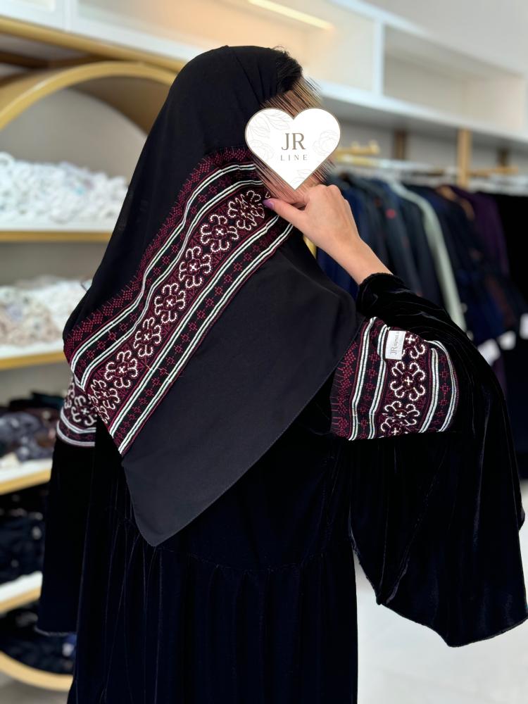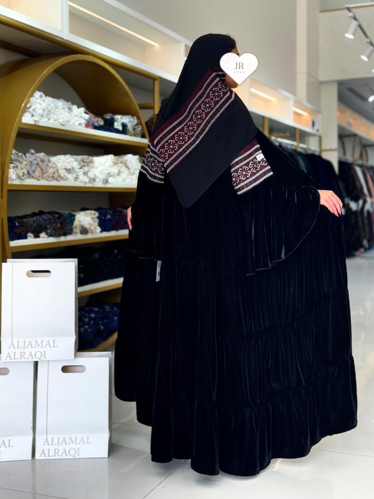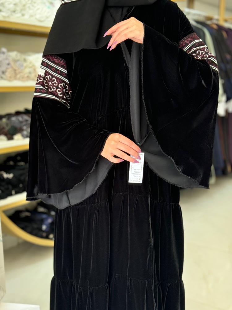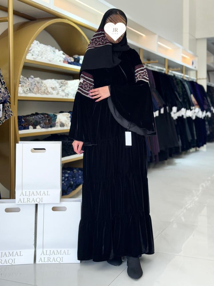 تشكيلة شتاء 2024 - عباية تارا دبل كلوش بقماش مخمل مع سدو عنابي