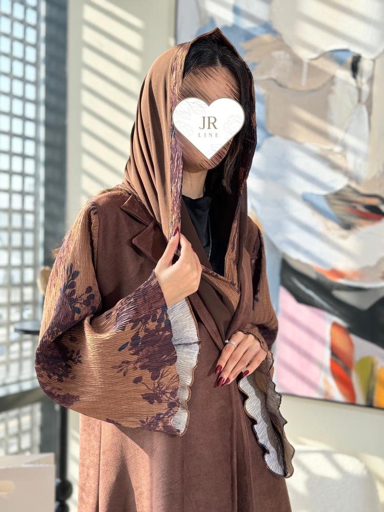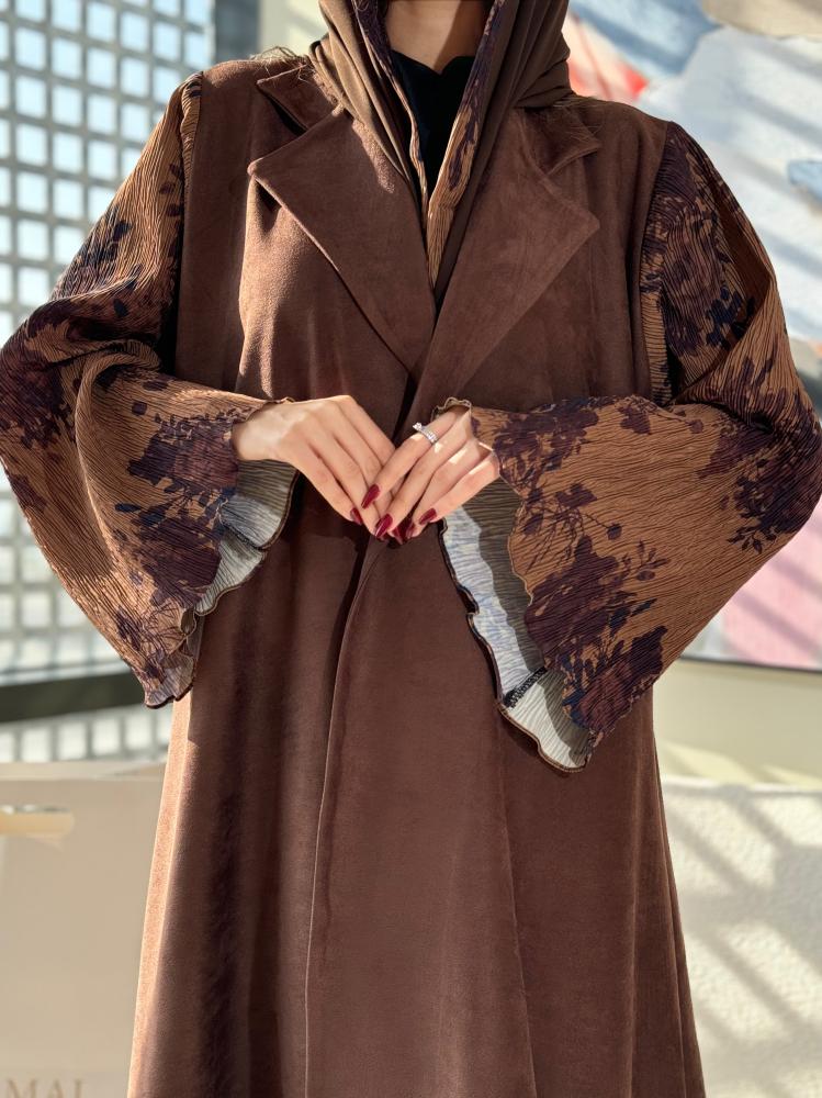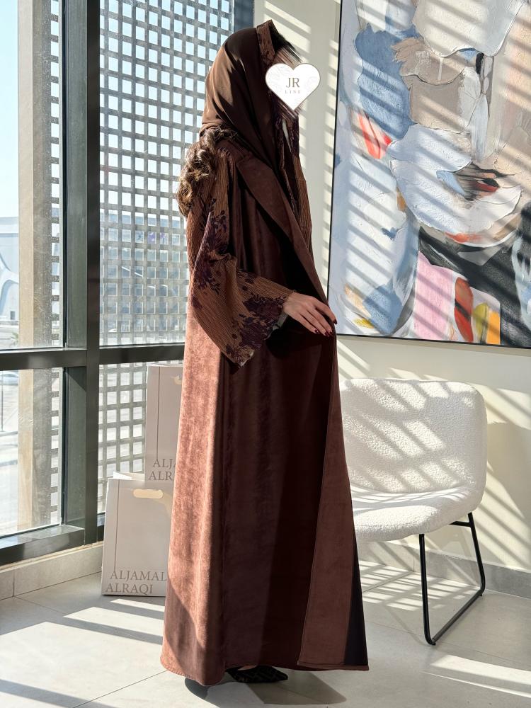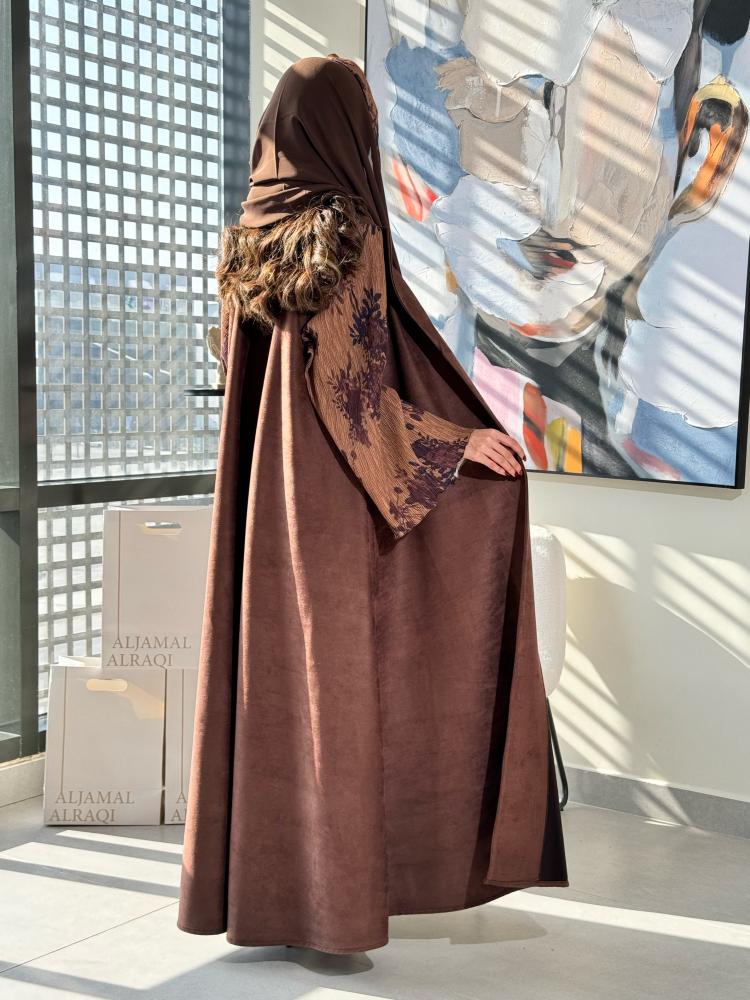 تشكيلة شتاء 2024 - عباية تيجان بقماش شامواه كم بوف - بني
