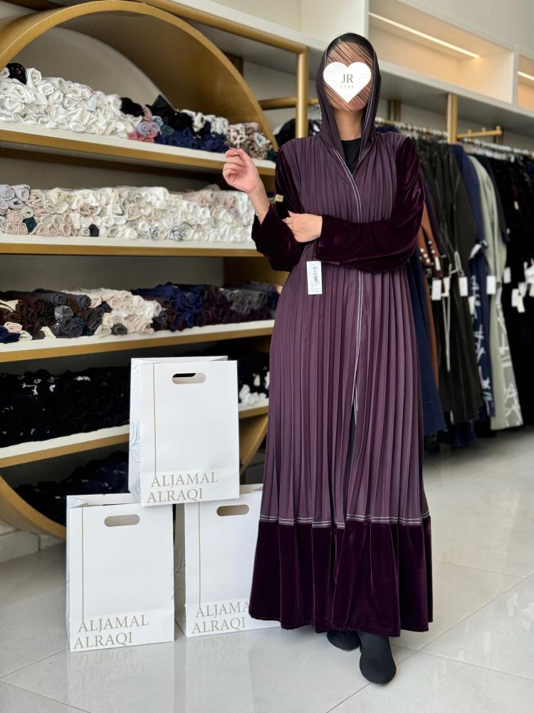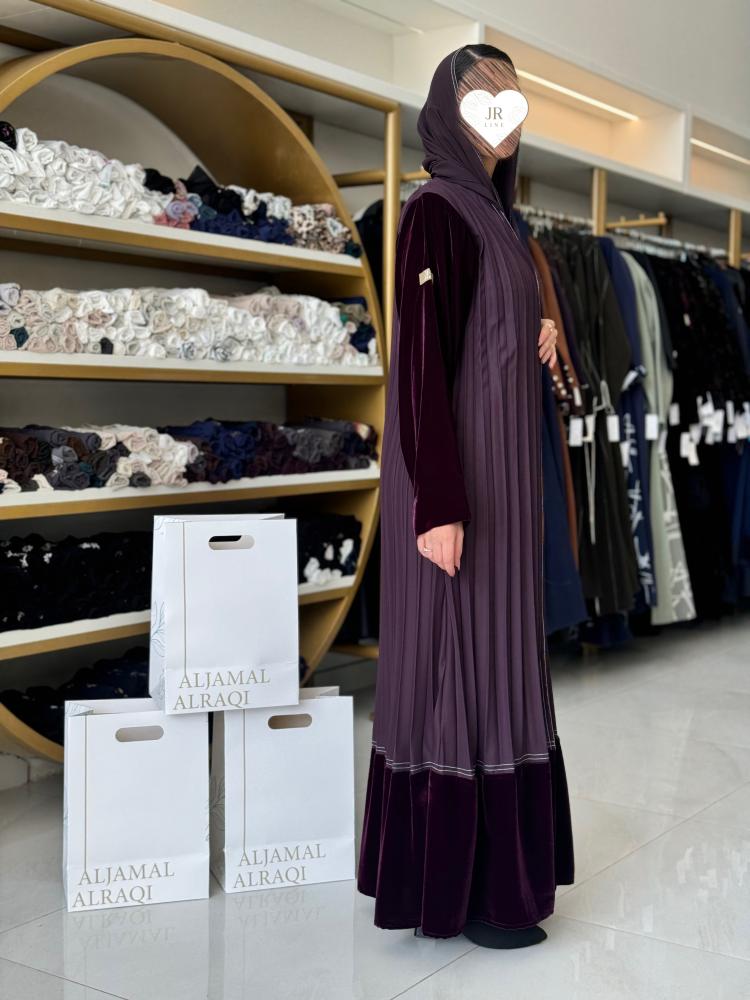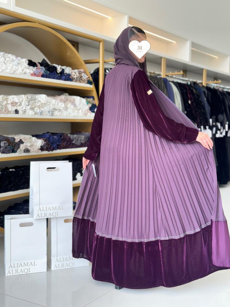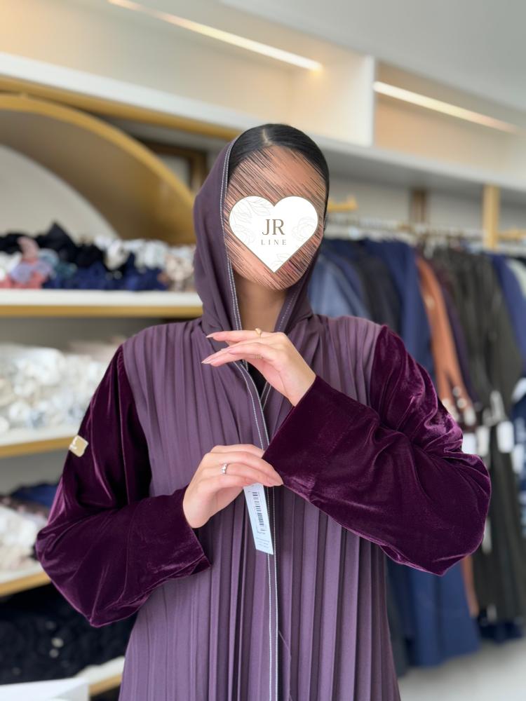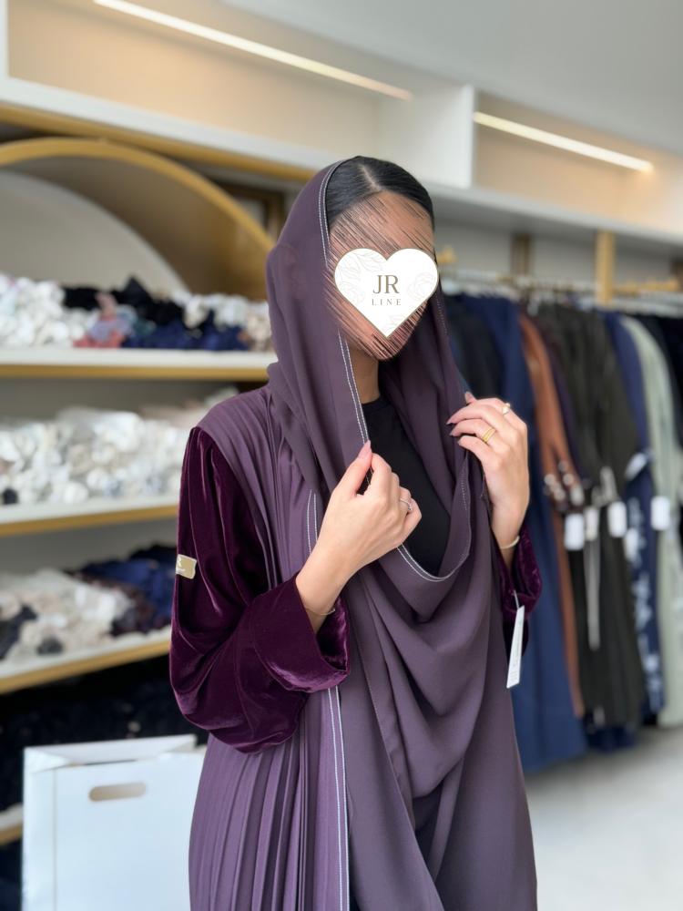 تشكيلة شتاء 2024 - عباية ديلارا كريب الاناقة مع مخمل بنفسجي غامق