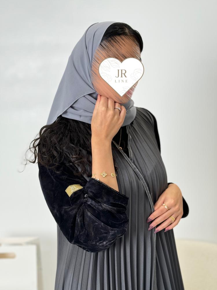 تشكيلة شتاء 2024 - عباية ديلارا كريب الاناقة مع مخمل رمادي