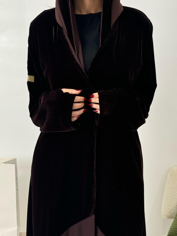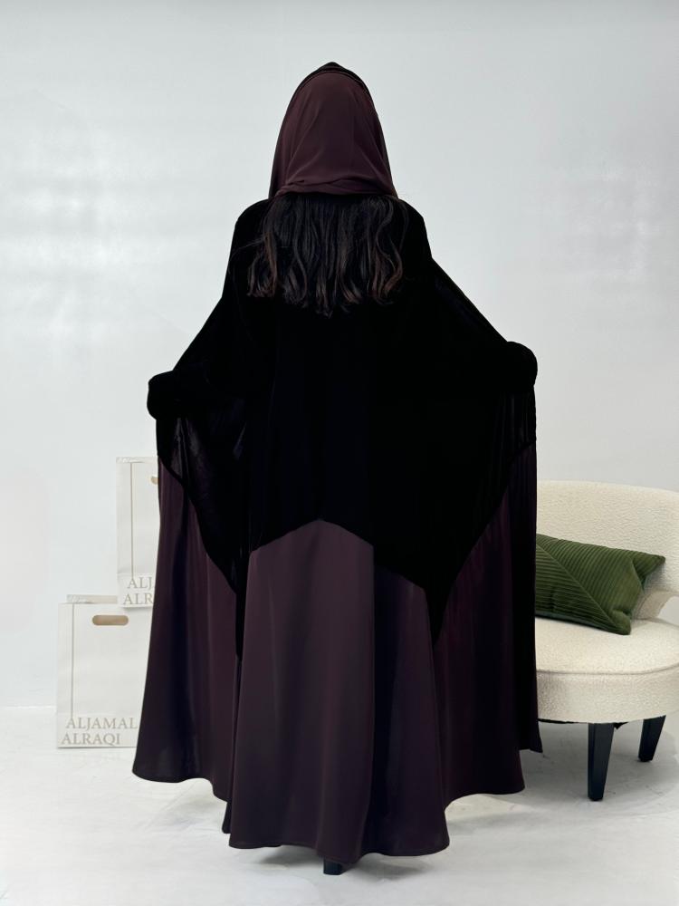 تشكيلة شتاء 2024 - عباية ريتان كريب الابداع ومخمل عنابي غامق