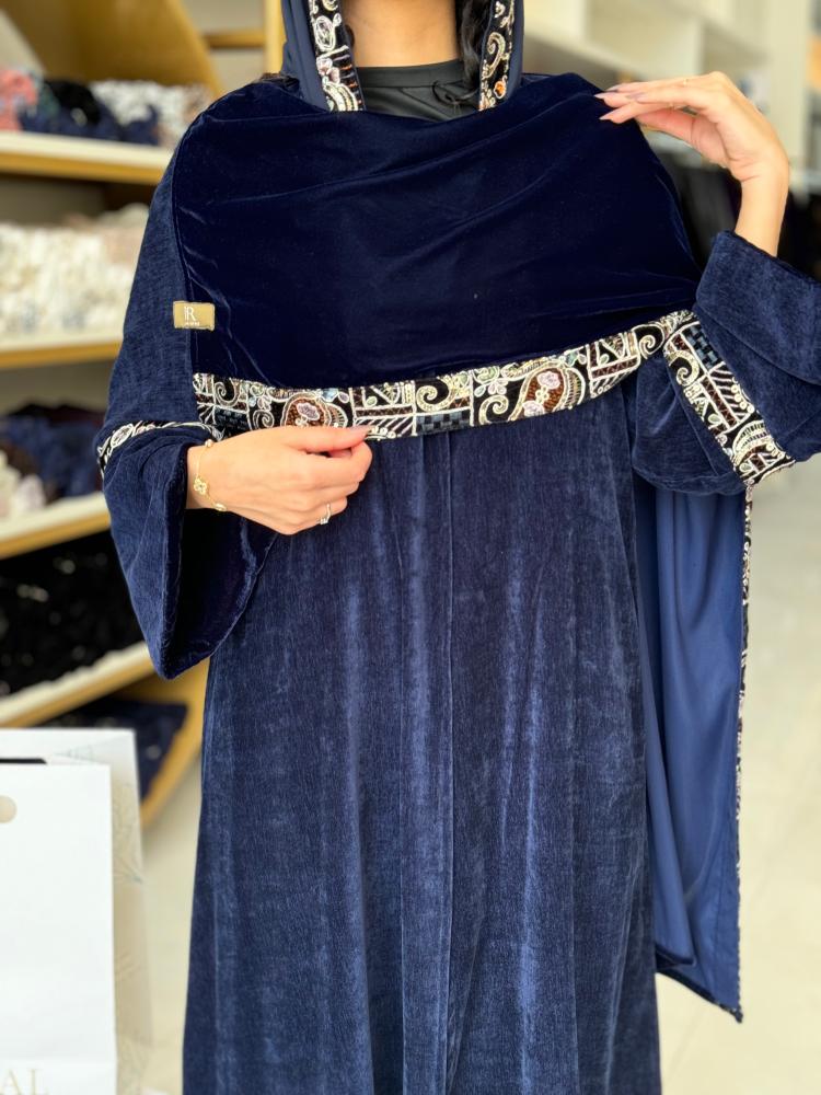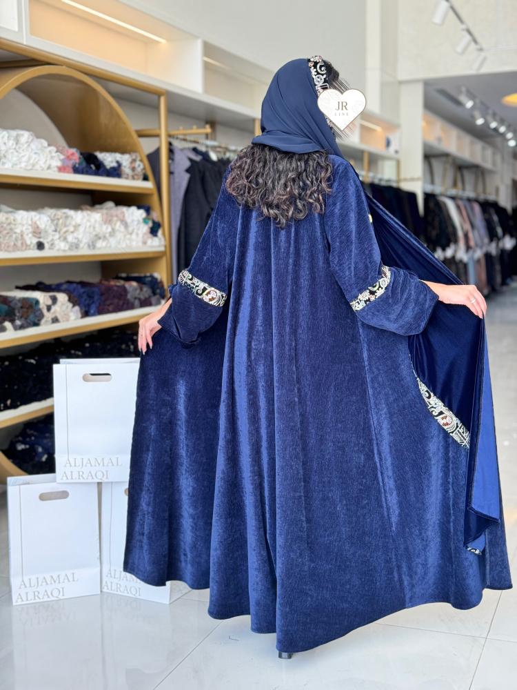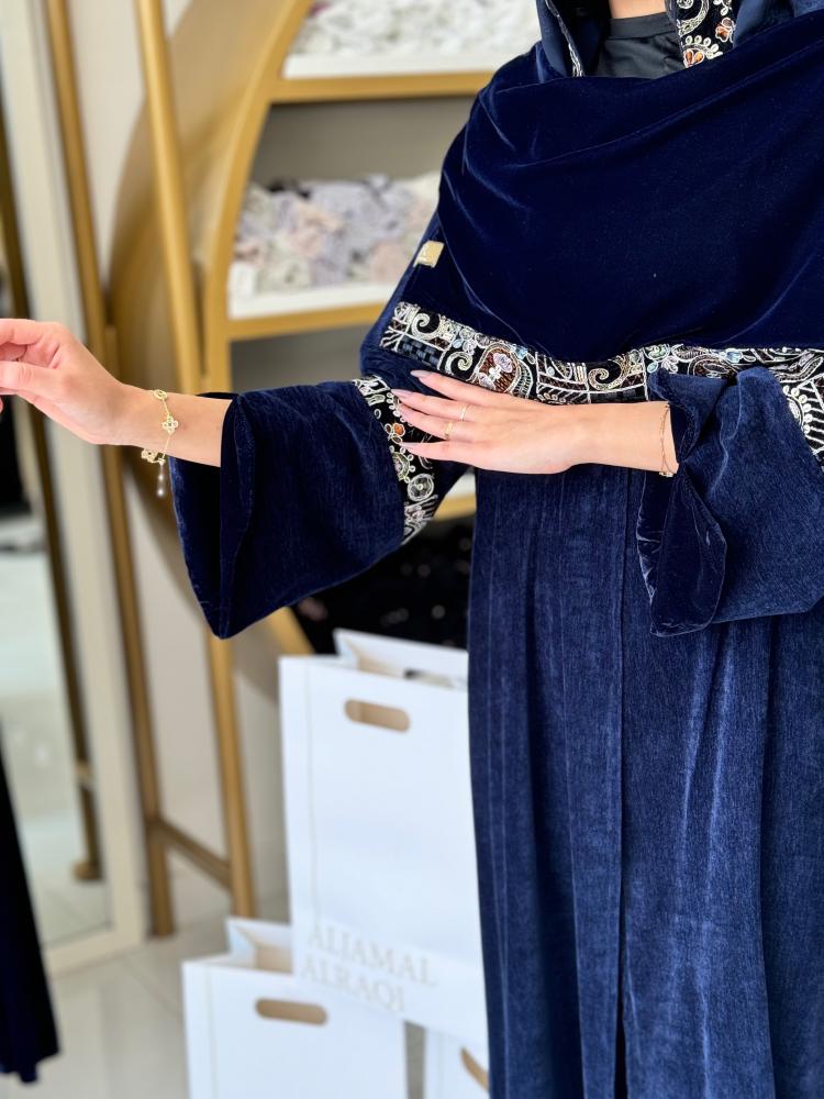 تشكيلة شتاء 2024 -عباية ياسمين بقماش مخمل بشال مطرز كحلي