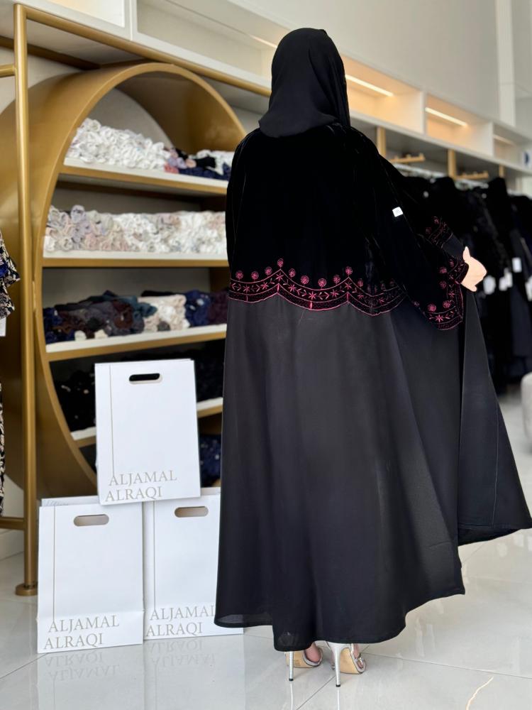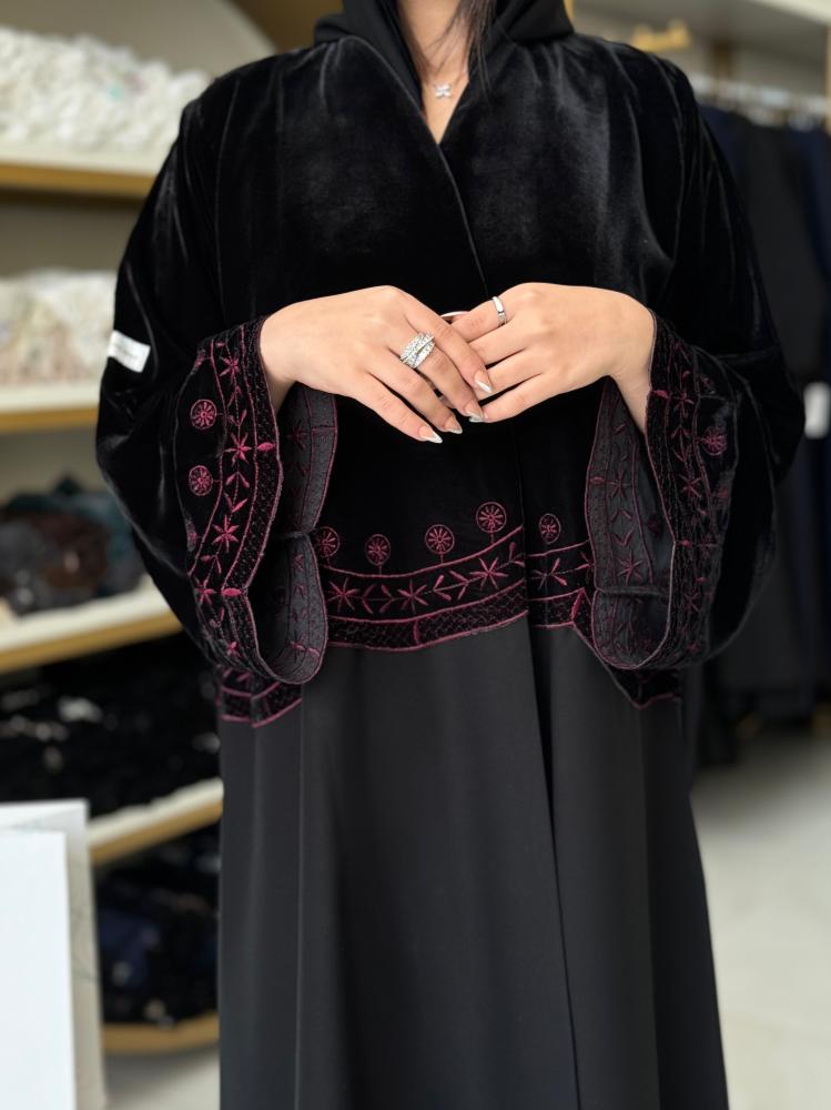 تشكيلة شتاء 2025 - عباية سوليتا كريب مع مخمل تطريز عنابي