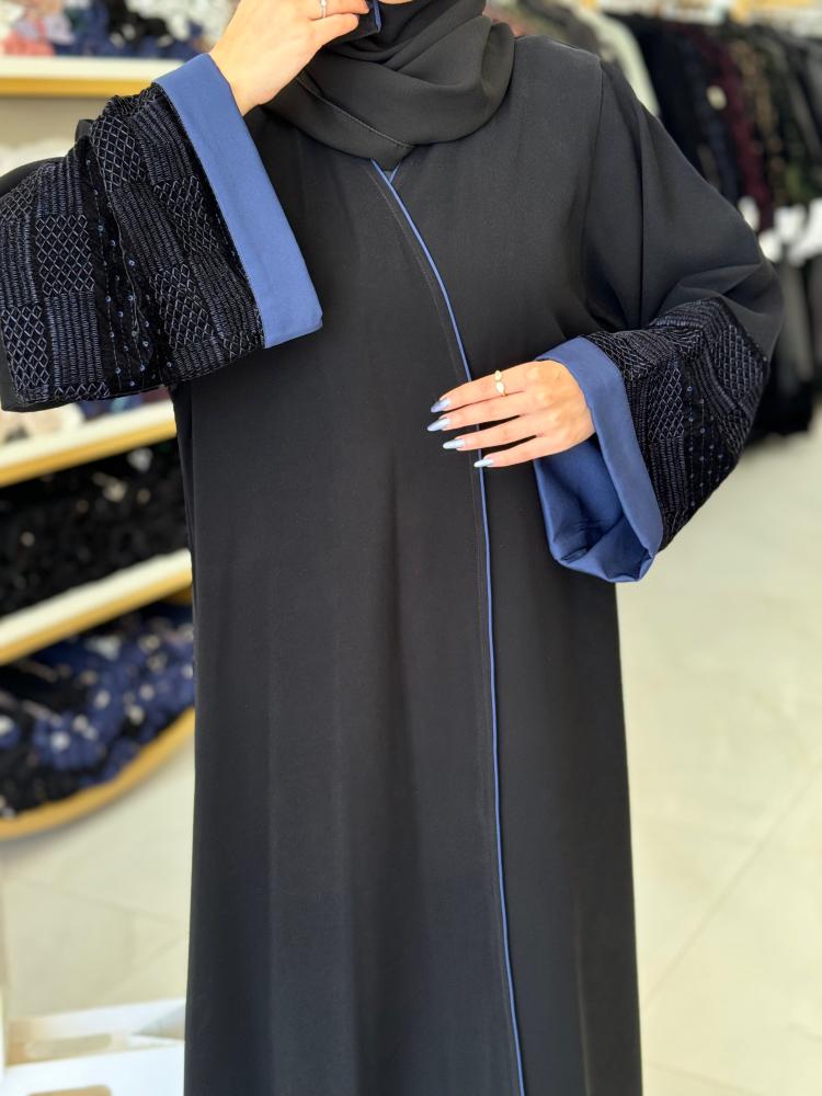 تشكيلة شتاء 2026 - عباية جوليا بقماش كريب الابداع بكم مخمل مطرز كحلي