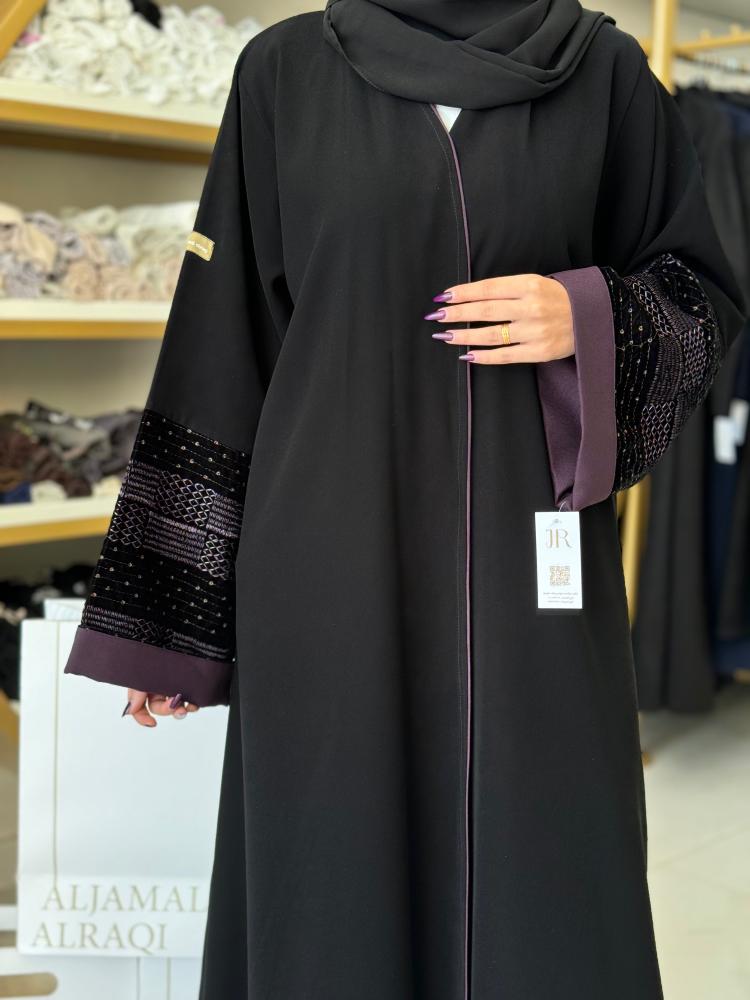 تشكيلة شتاء 2026 - عباية جوليا بقماش كريب الابداع بكم مخمل مطرز موف 2