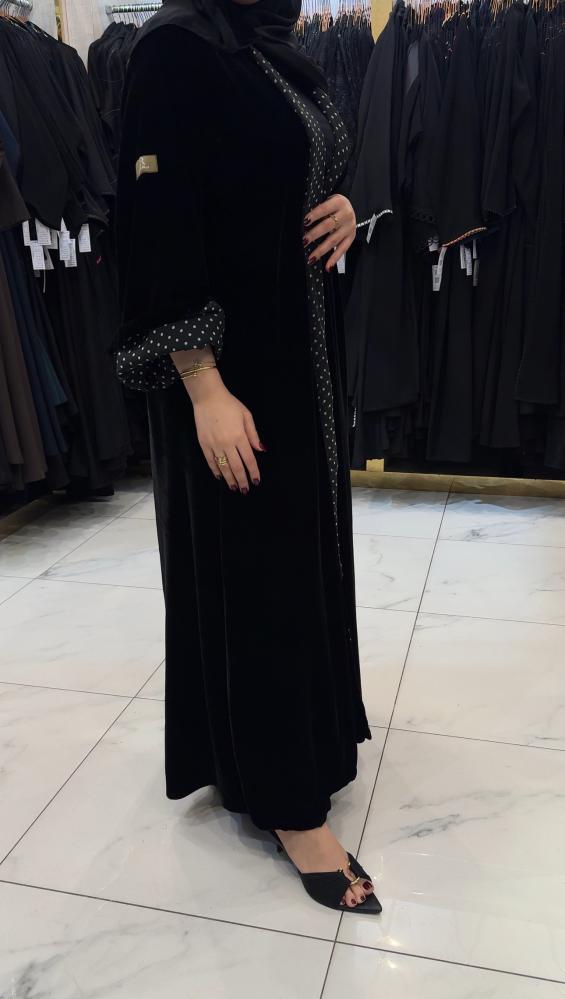عباية ابريكا بقماش مخمل كوري دبل فيس مع شيفون منقط