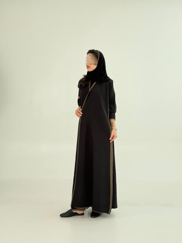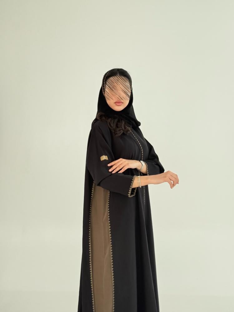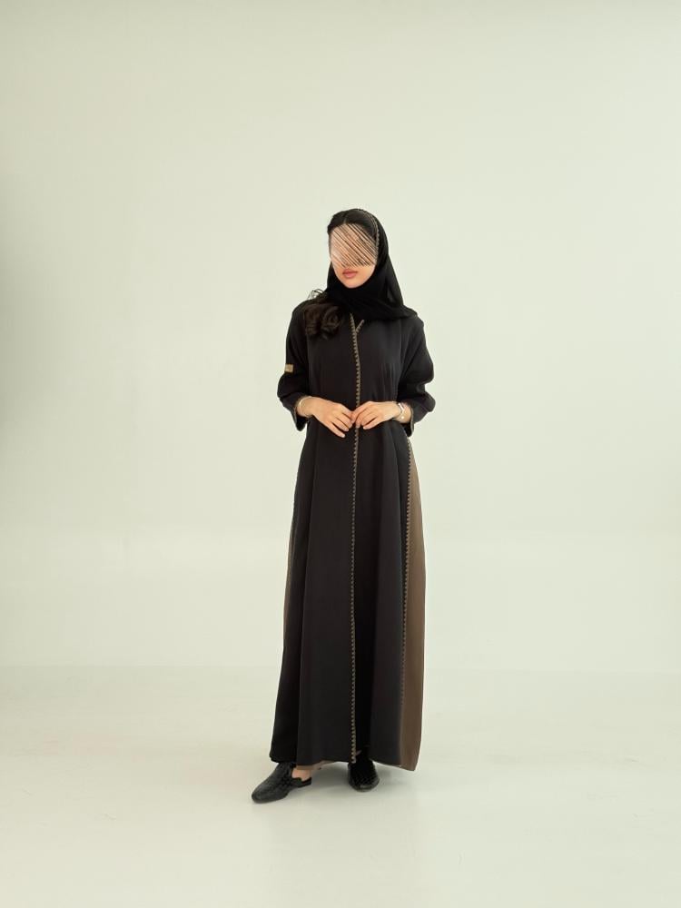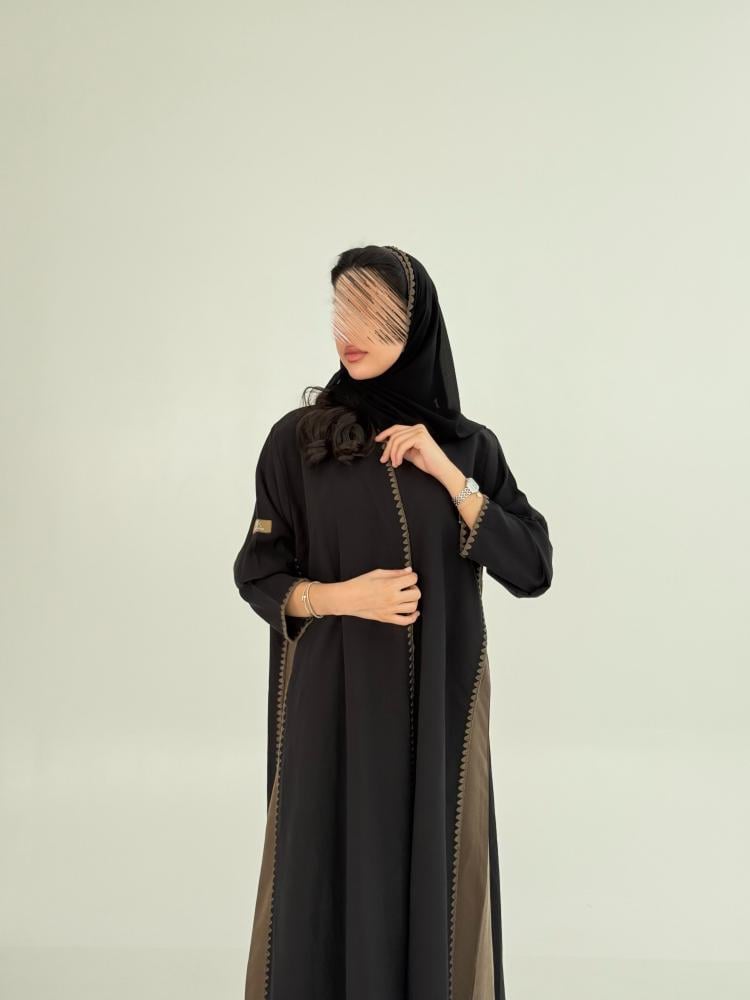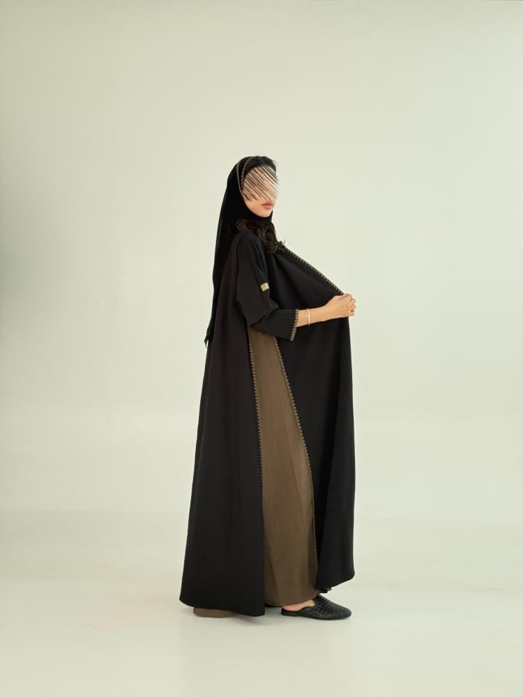 عباية العنود بقماش حرير مغسول بحياكة يدويه زيتي
