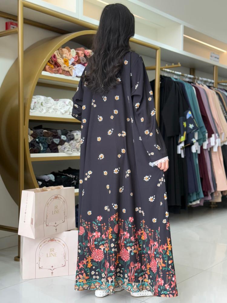 عباية الهبه لبنى بقماش حرير تويل اسود مورد