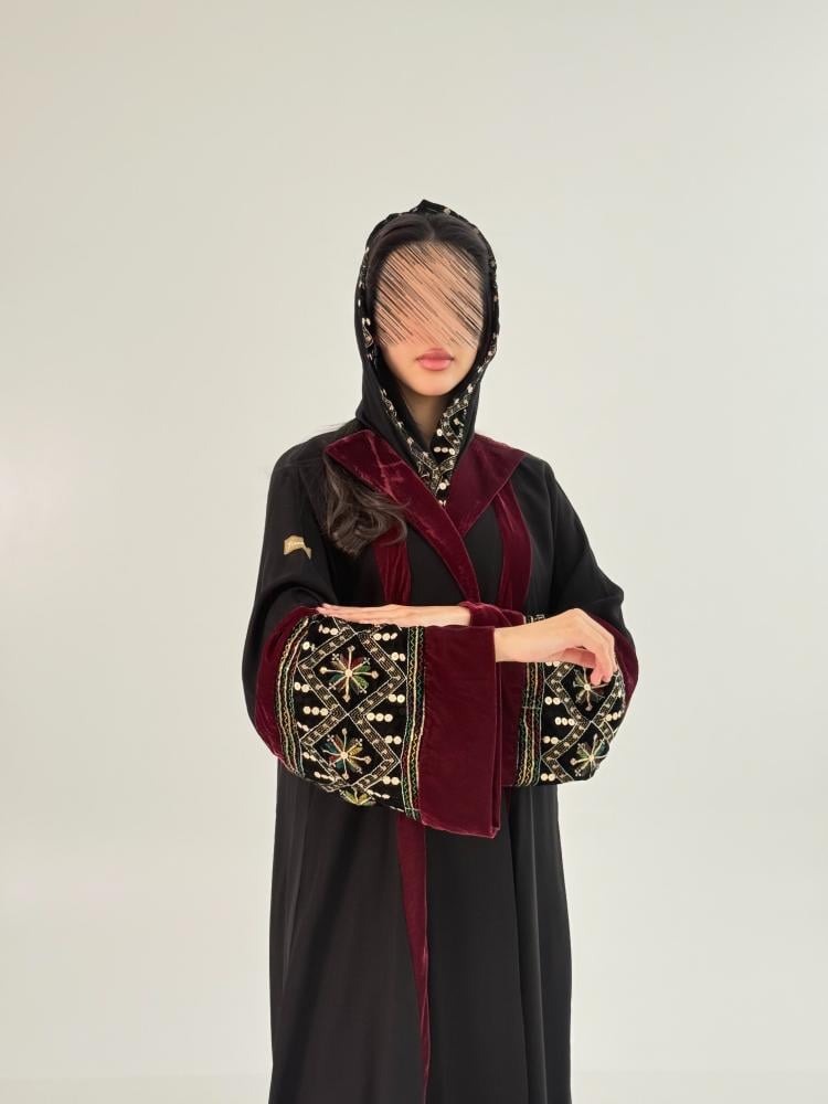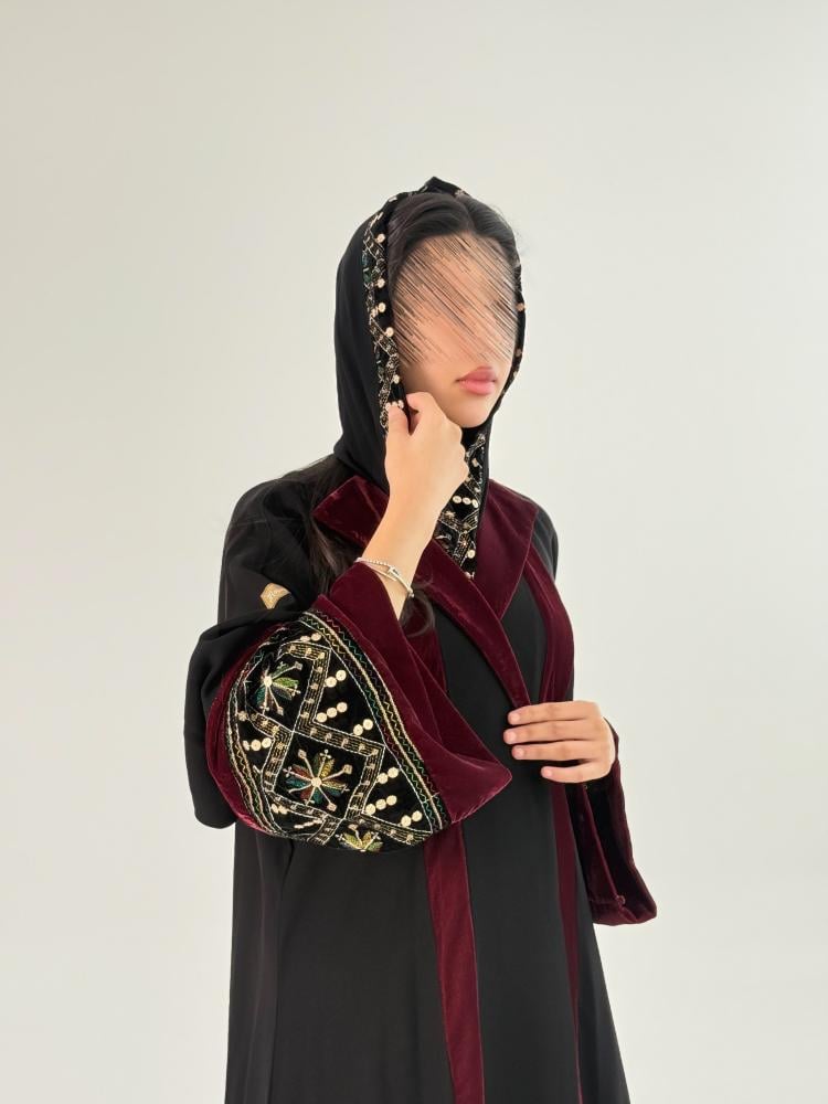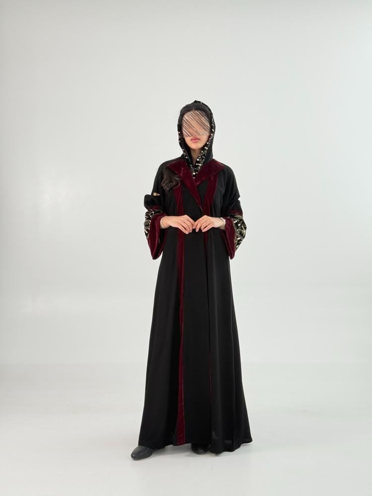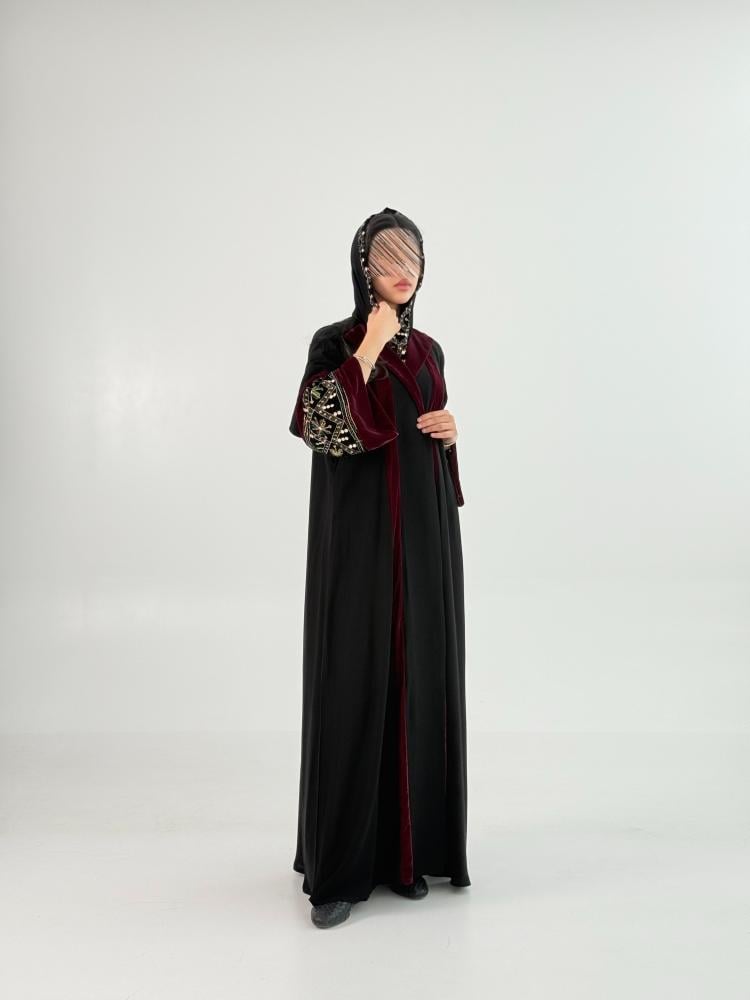 عباية اماني بقماش كريب الاناقه تدخيلات مخمل عنابي