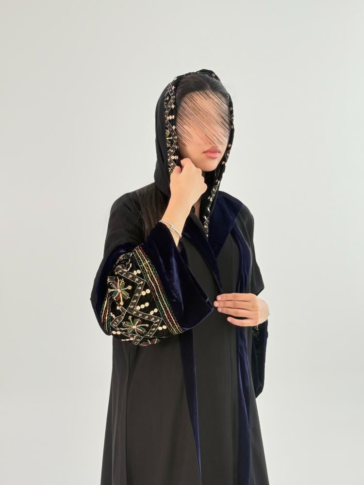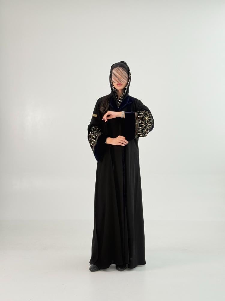 عباية اماني بقماش كريب الاناقه تدخيلات مخمل كحلي