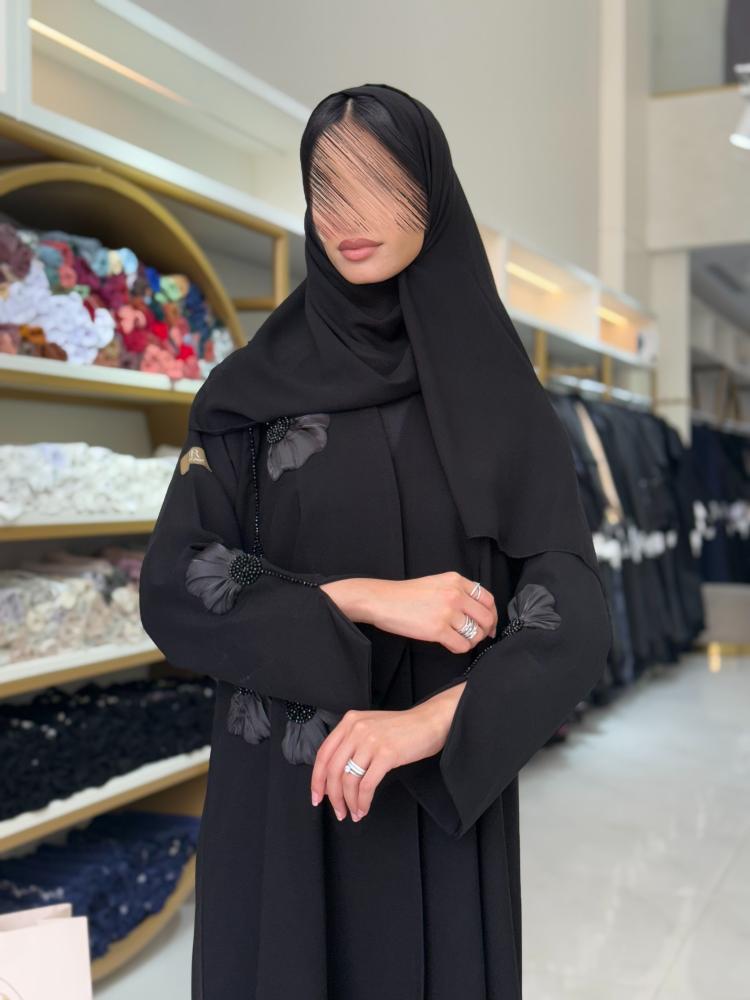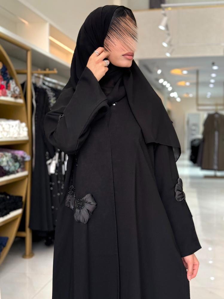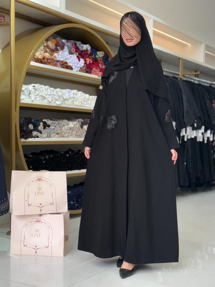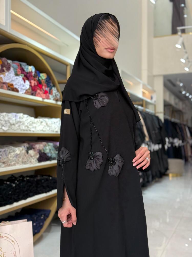 عباية بتول بقماش كريب باربي مزين بورد مشكوك