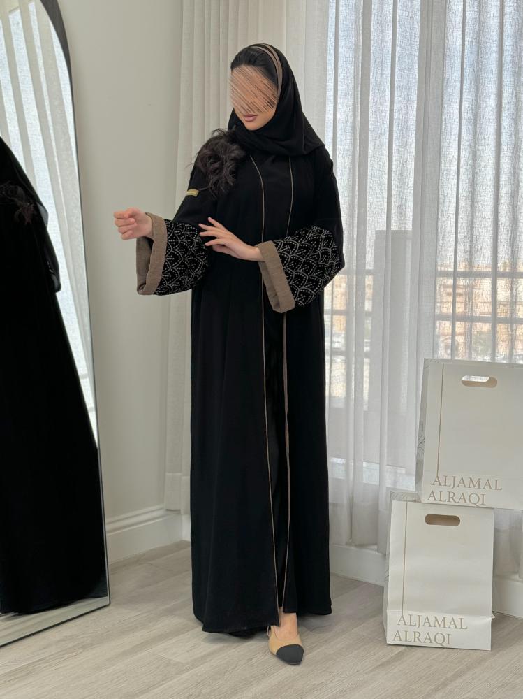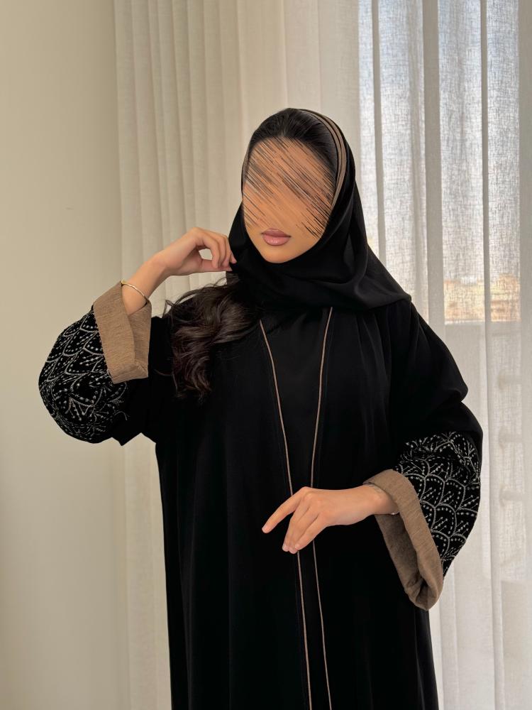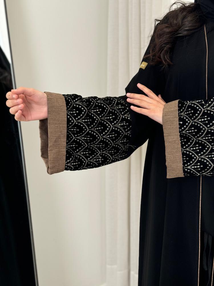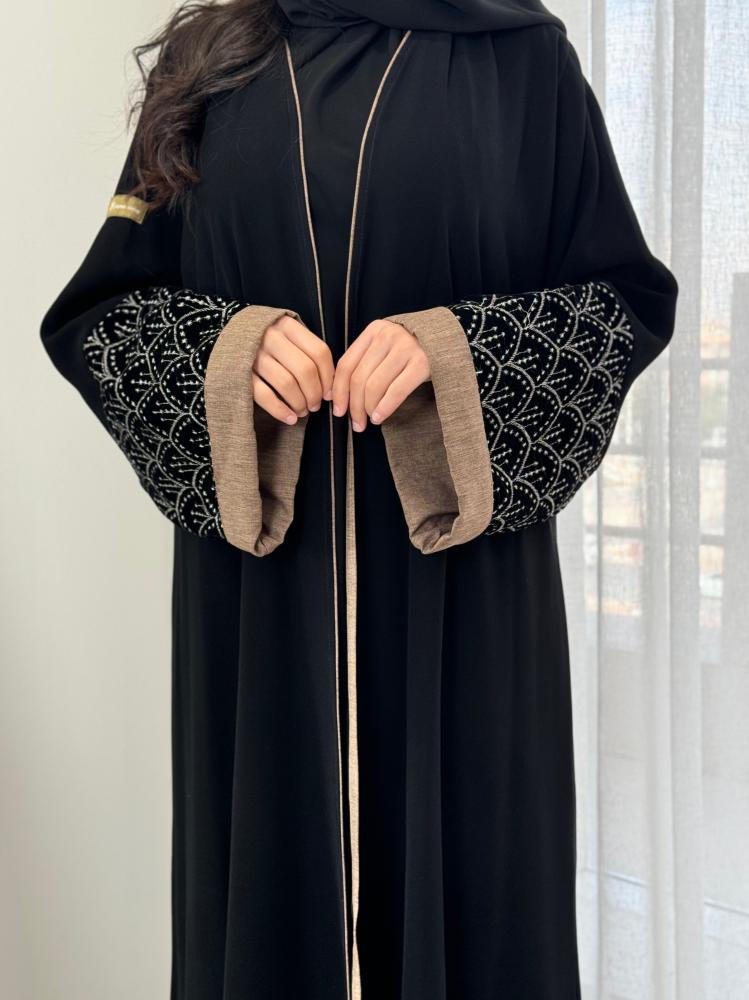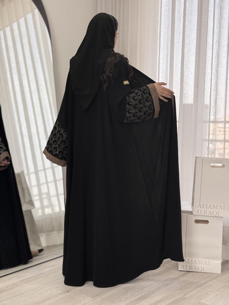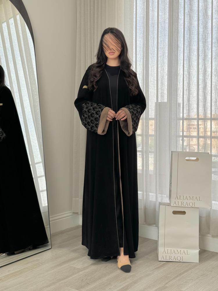 عباية بشرى كريب الابداع مع تطريز مخمل مربع