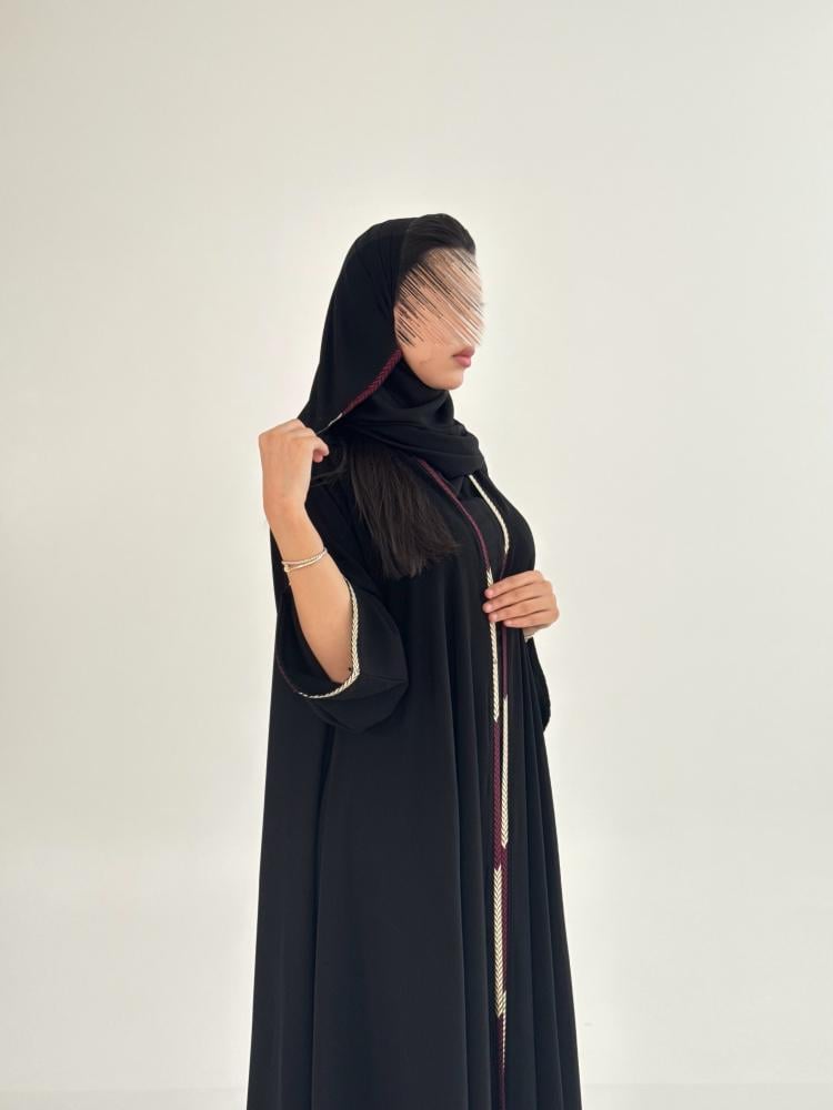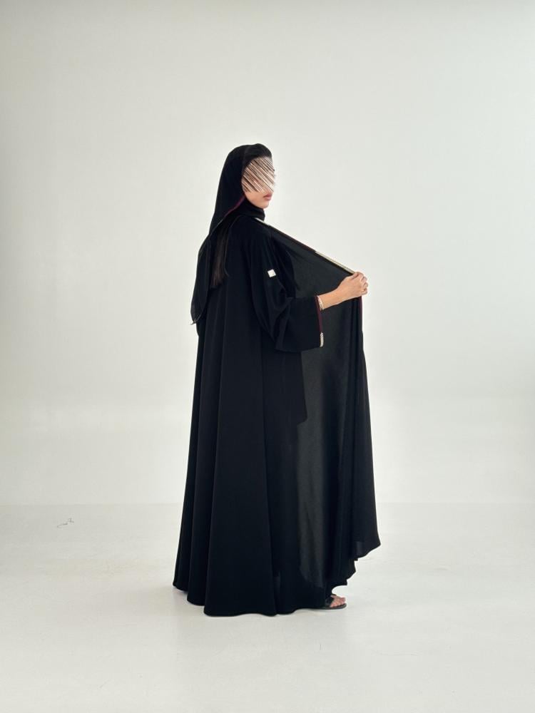 عباية بلقيس بقماش كريب ملكي دبل كلوش بتطريز عنابي