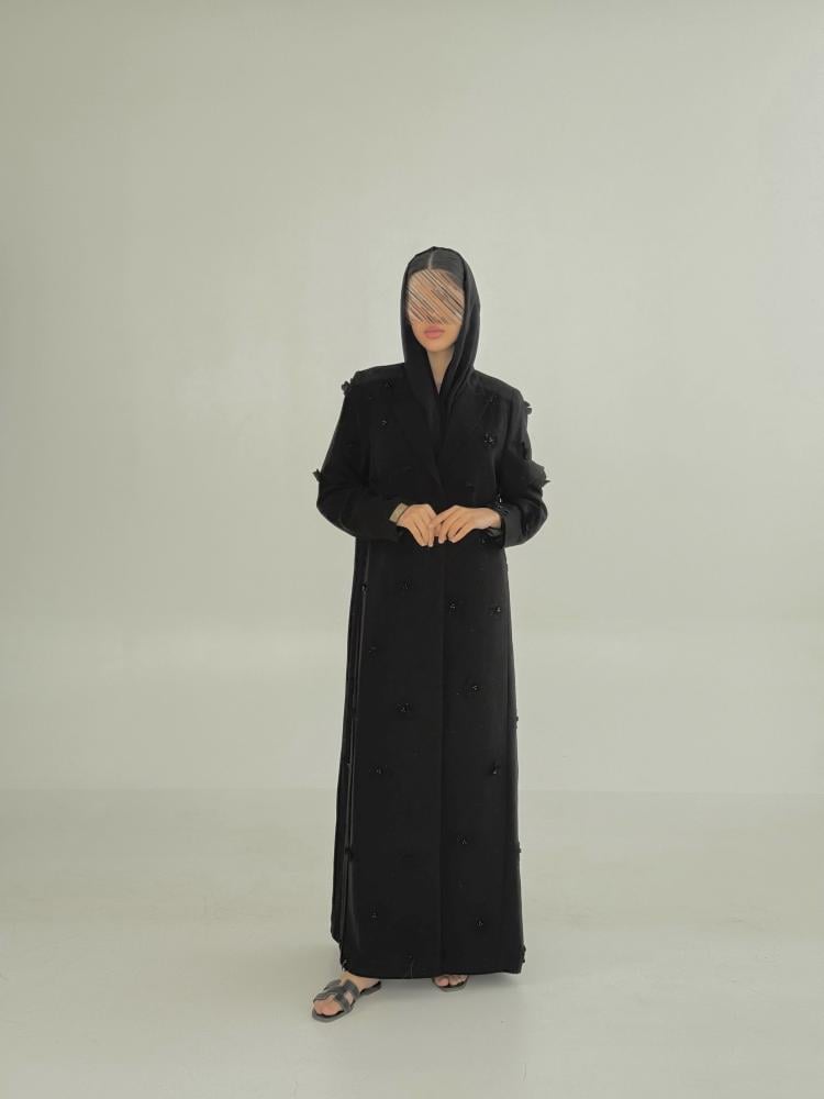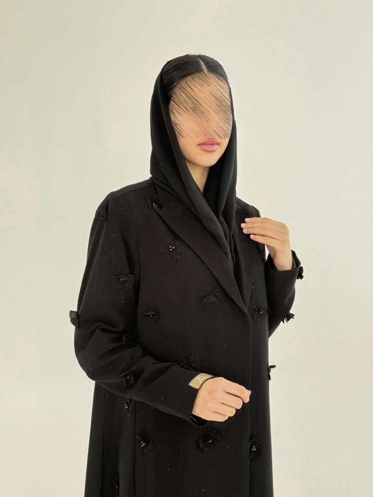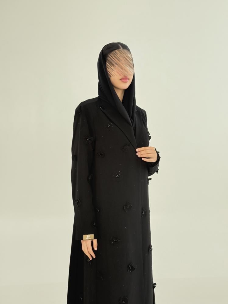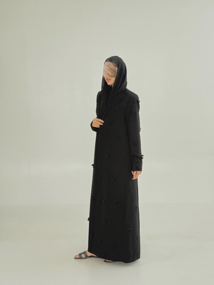 عباية | بليزر لمى بقماش كريب رموش مزين بورد ولولو اسود