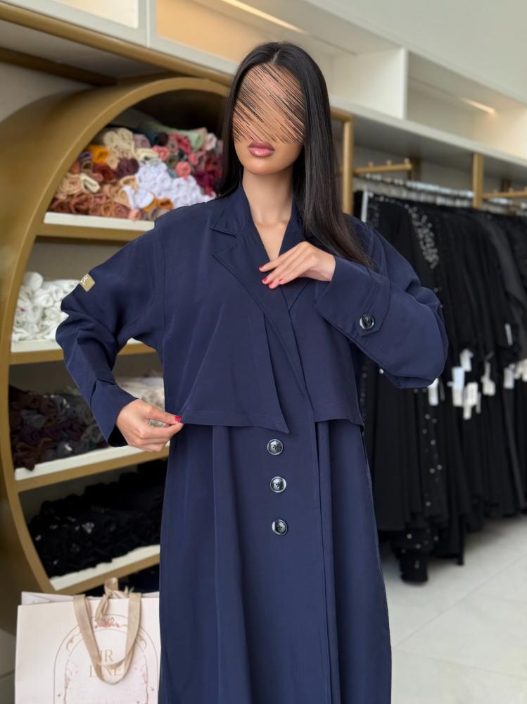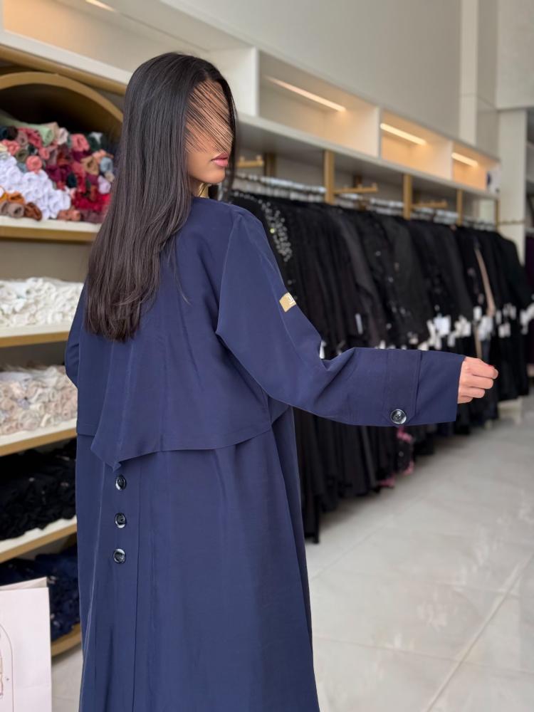 عباية تارا بقماش حرير مغسول مزين بازره كحلي