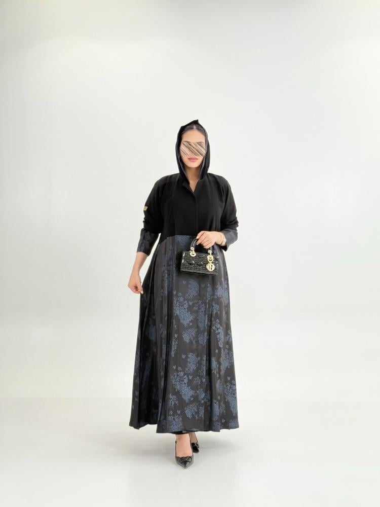 عباية تولاي بقماش كريب الاناقة تدخيلات جاكار كحلي