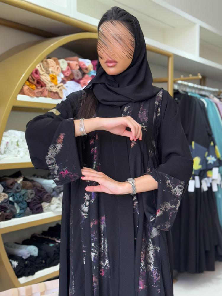 عباية جمانه بقماش كريب الابداع تدخيلات حرير ملون