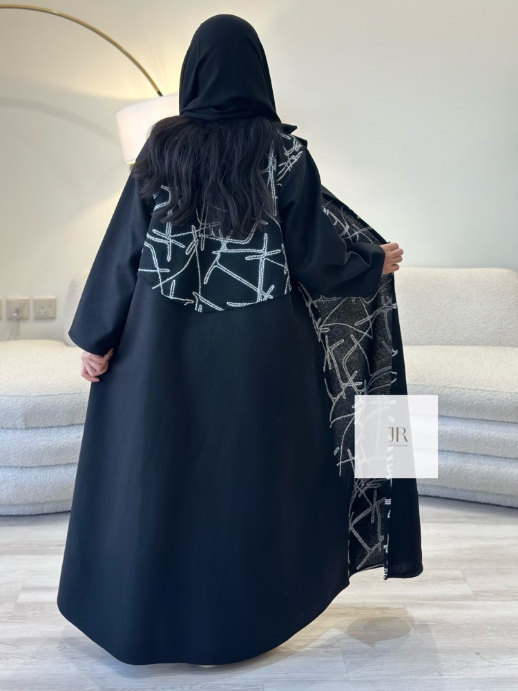 عباية جوخ تدخيلات تطريز ابيض - اسود