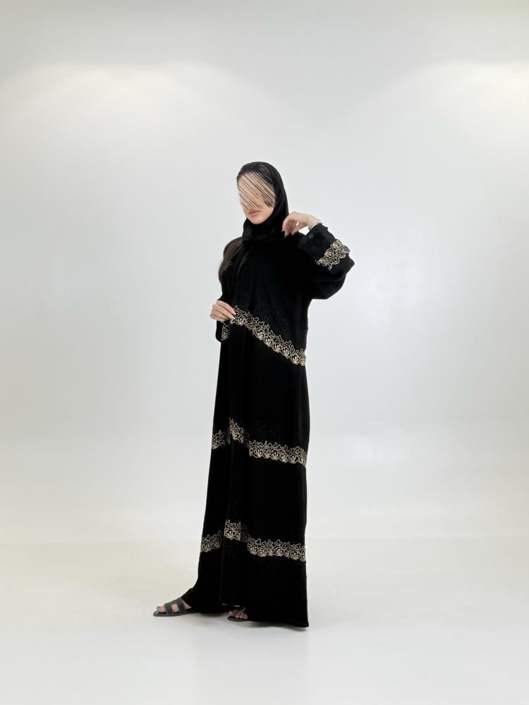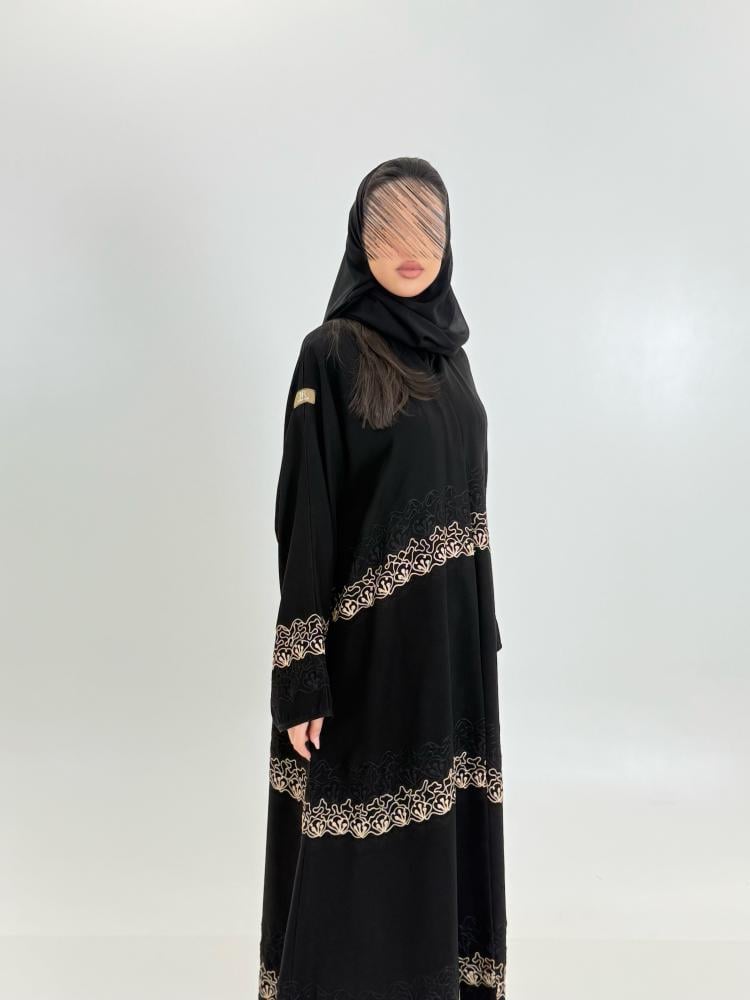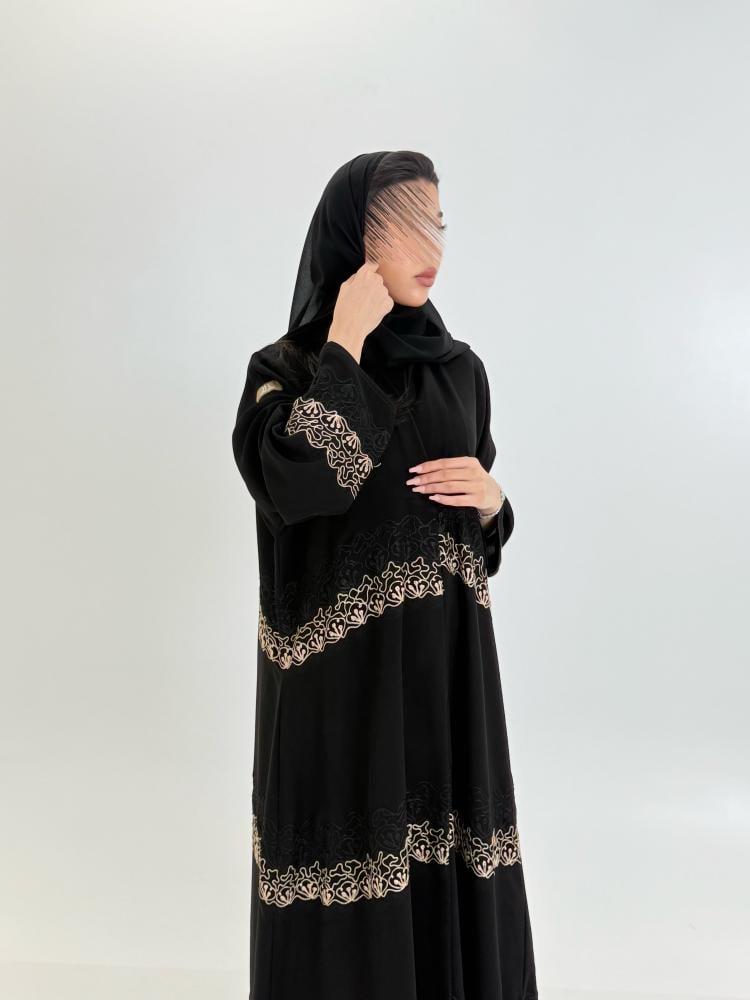 عباية حنيه بقماش كريب الابداع بتطريز هاري بيج