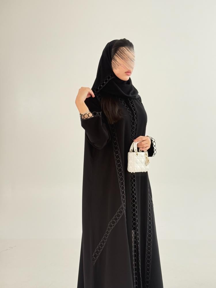 عباية دره بقماش كريب ملكي مزين بكلفه دوائر