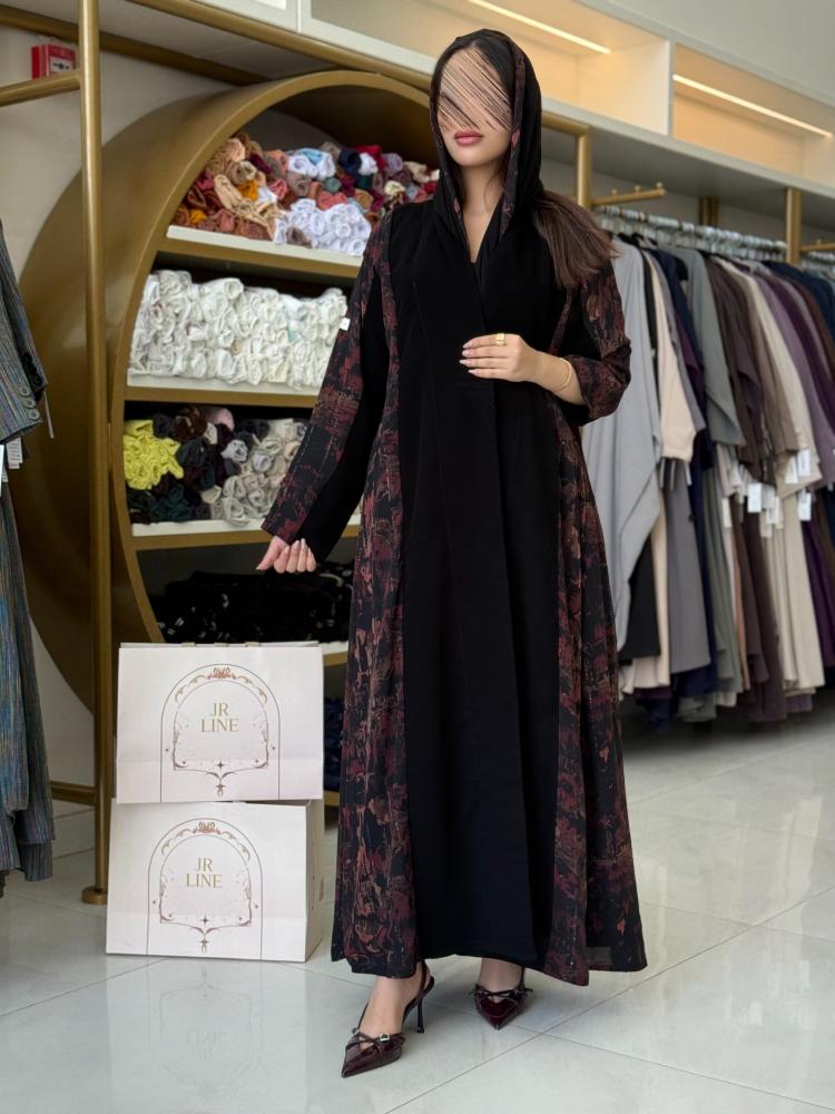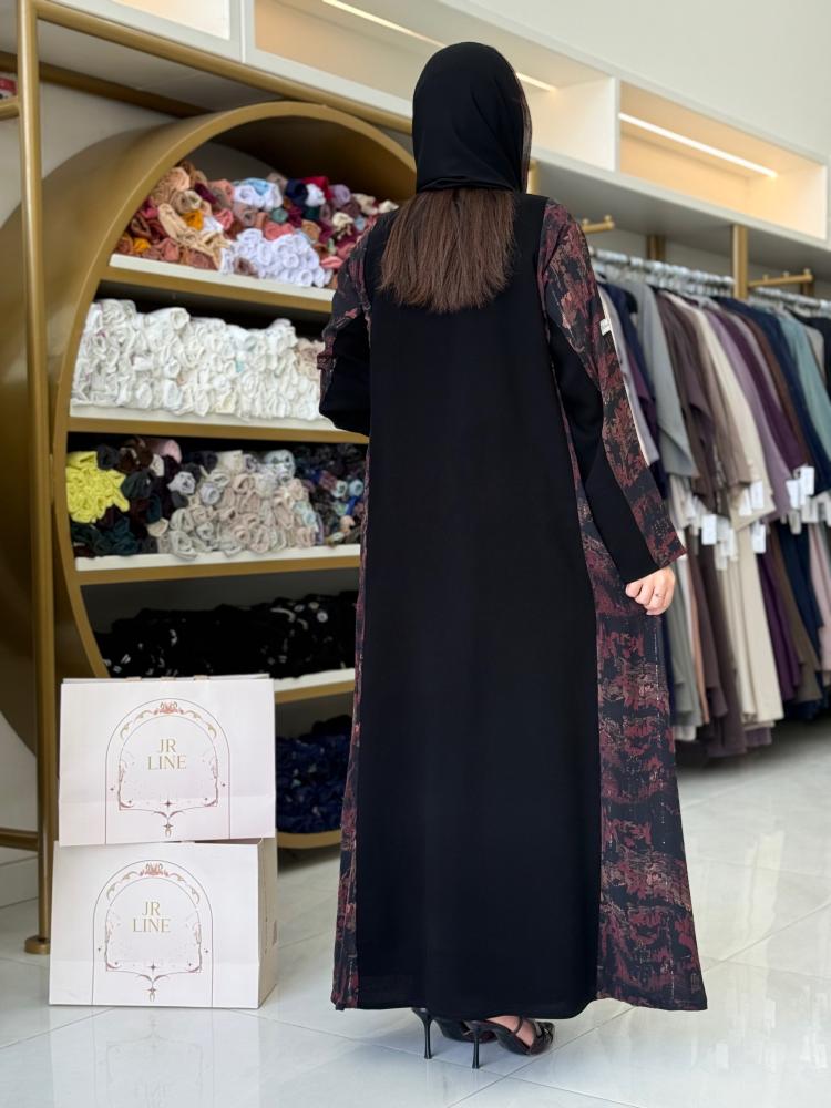 عباية ردون بقماش كريب الابداع تدخيلات شيفون عنابي