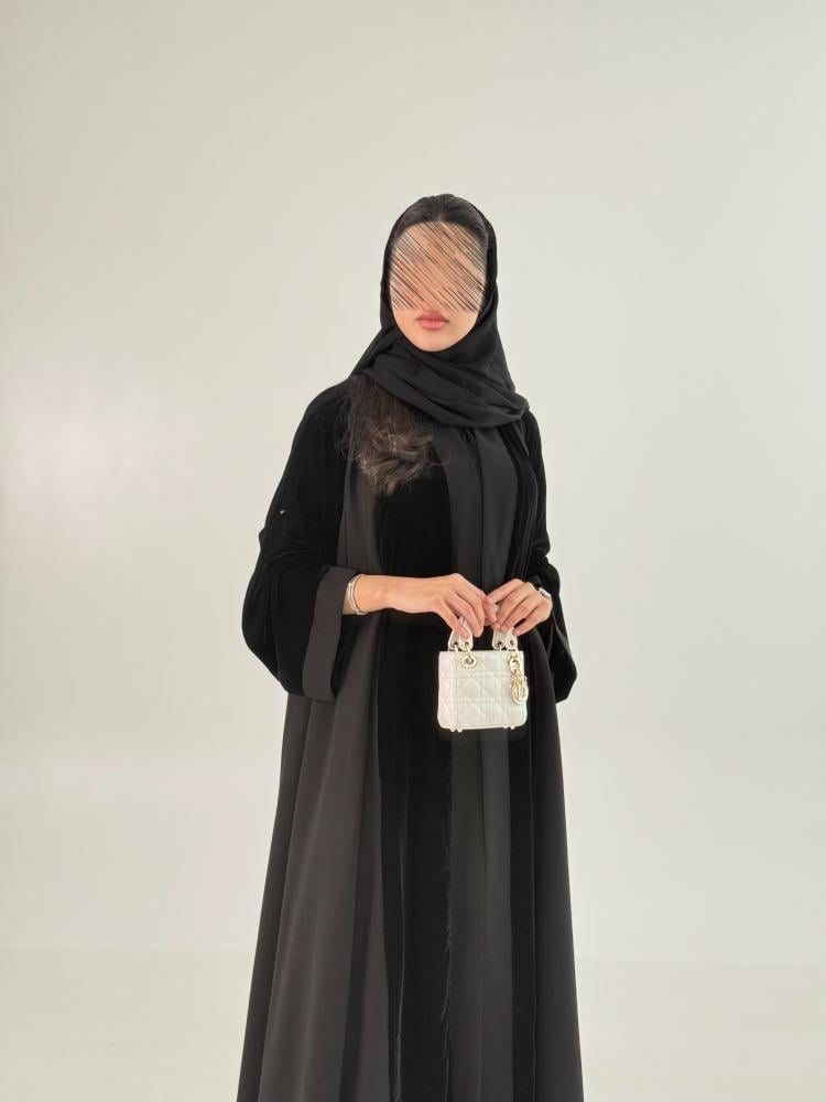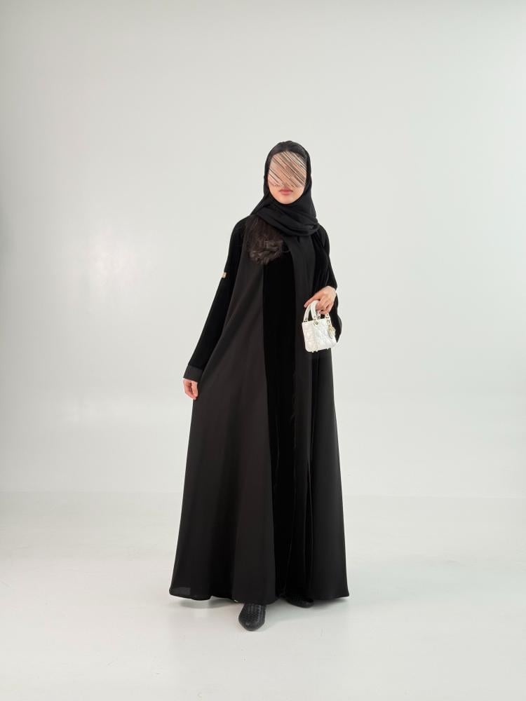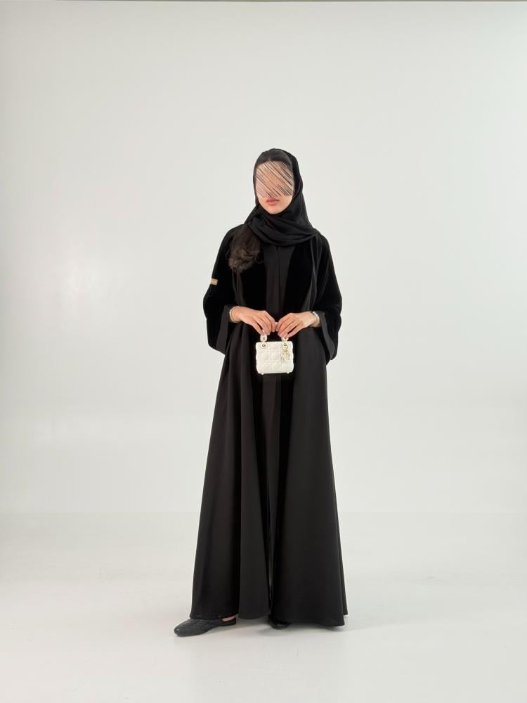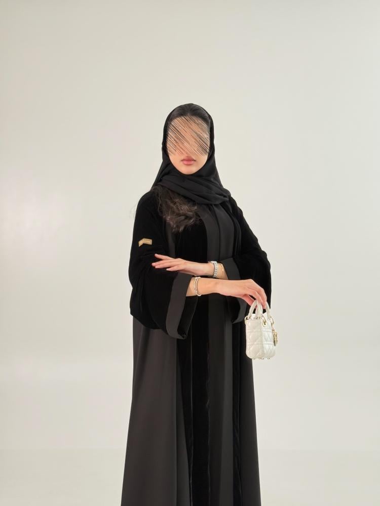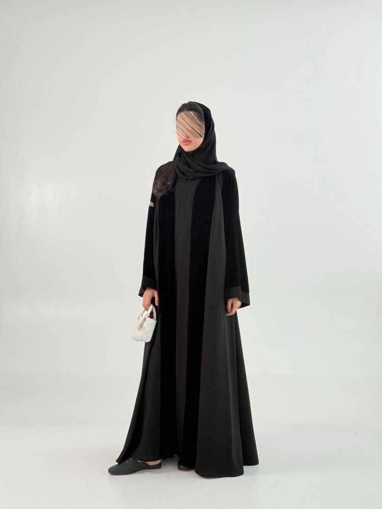 عباية رذاذ بقماش كريب الاناقه مكس مخمل اسود
