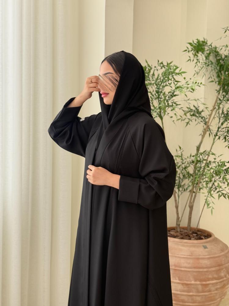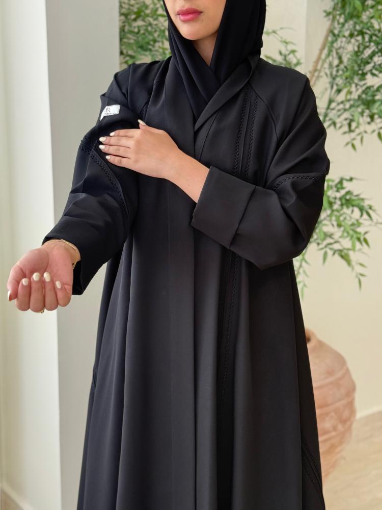 عباية روان بقماش كريب الاناقة بتطريز هاري اسود