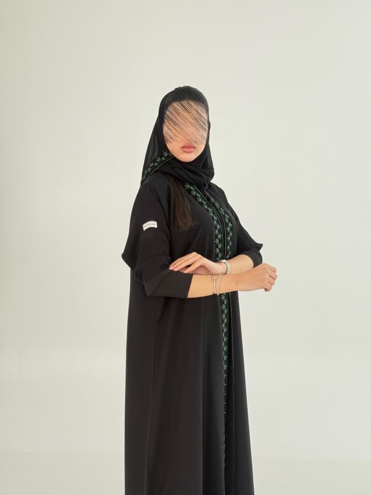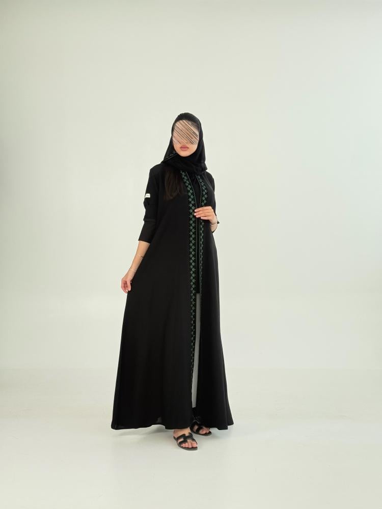 عباية ريمين بقماش انترنت بتطريز زيتي