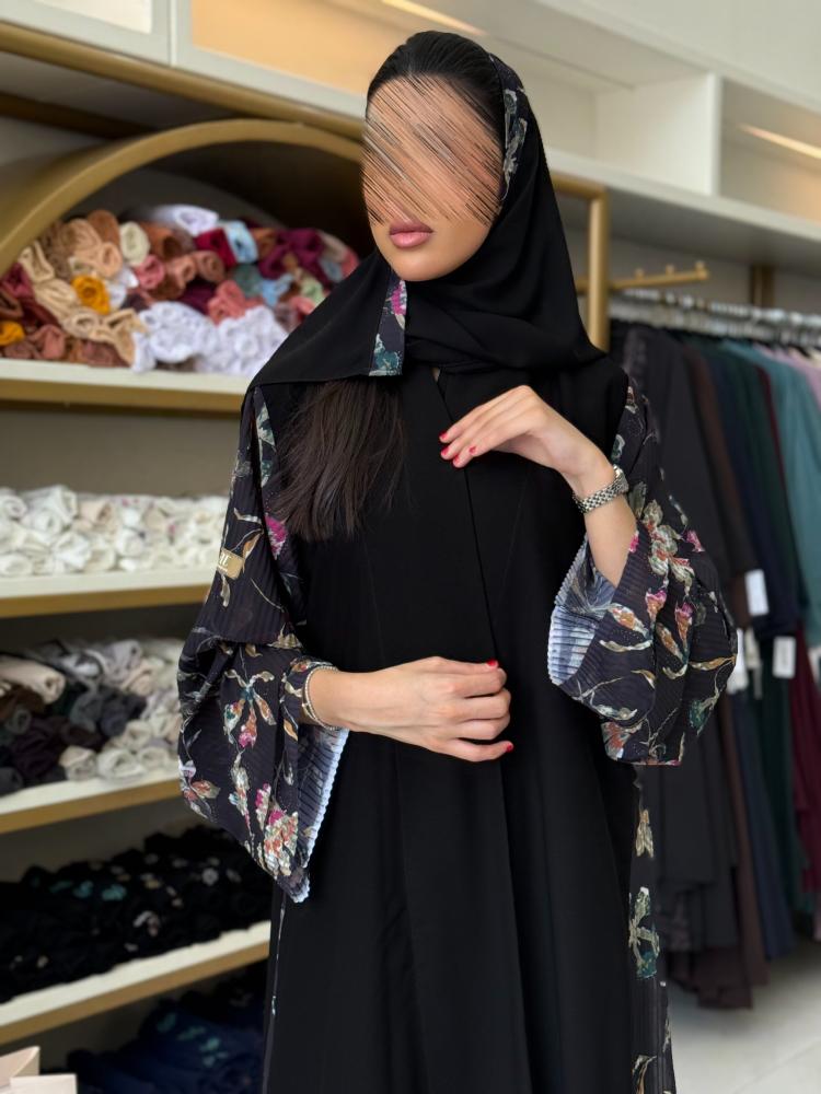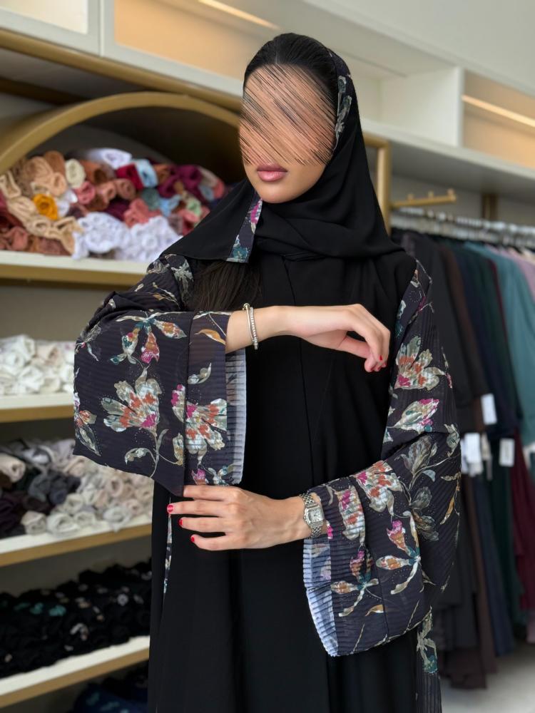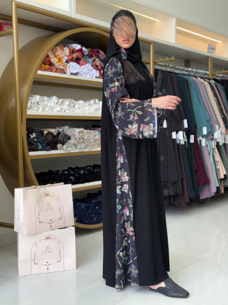 عباية سالي بقماش كريب ملكي تدخيلات شيفون مكسر 2