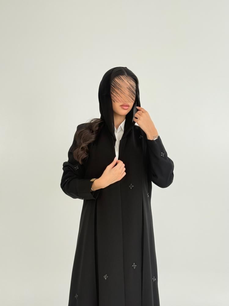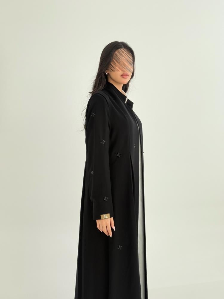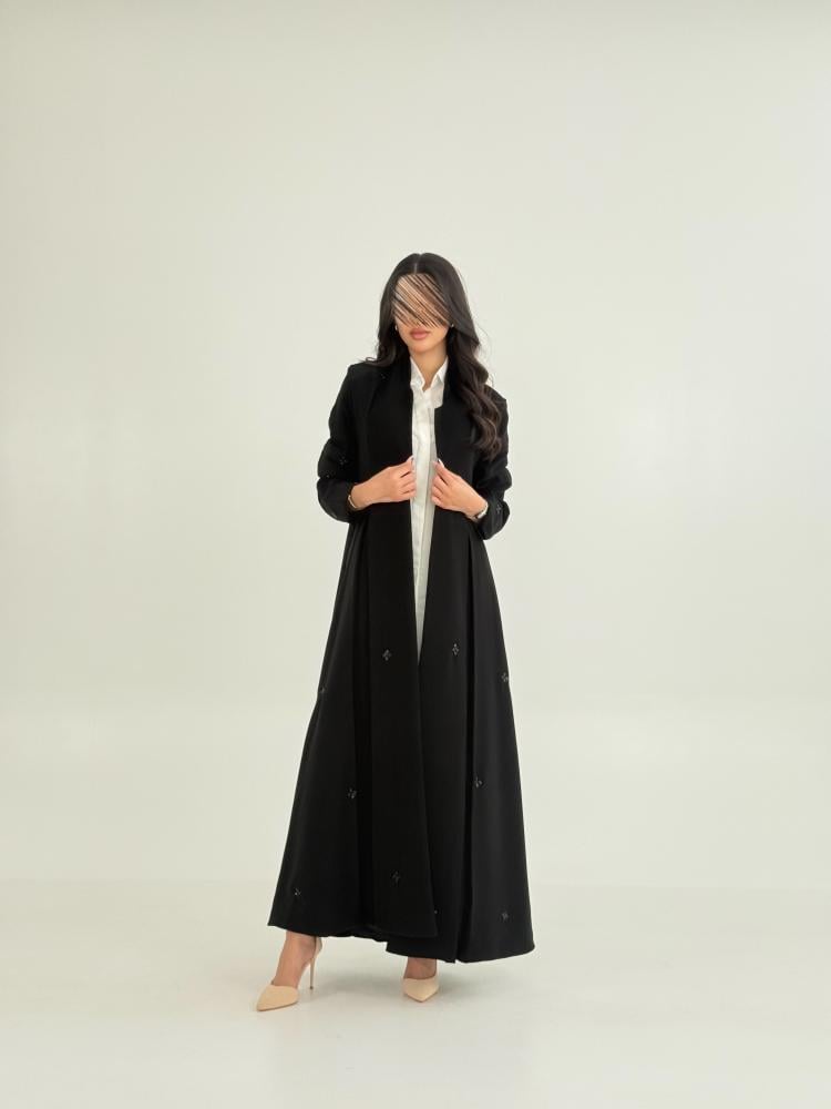 عباية سوار بليزر رسمي مزين بكسرات وشك بقماش كريب رموش اسود