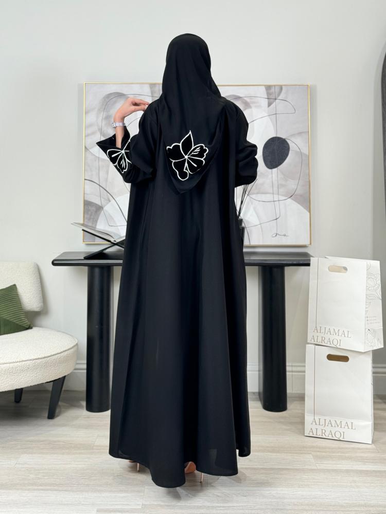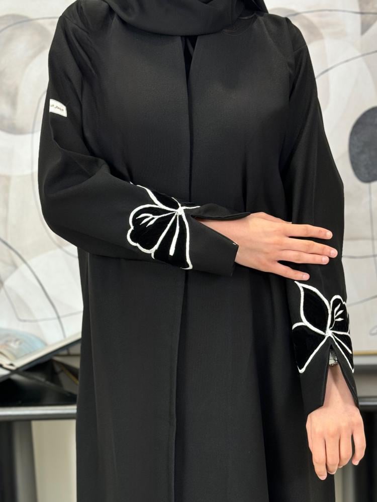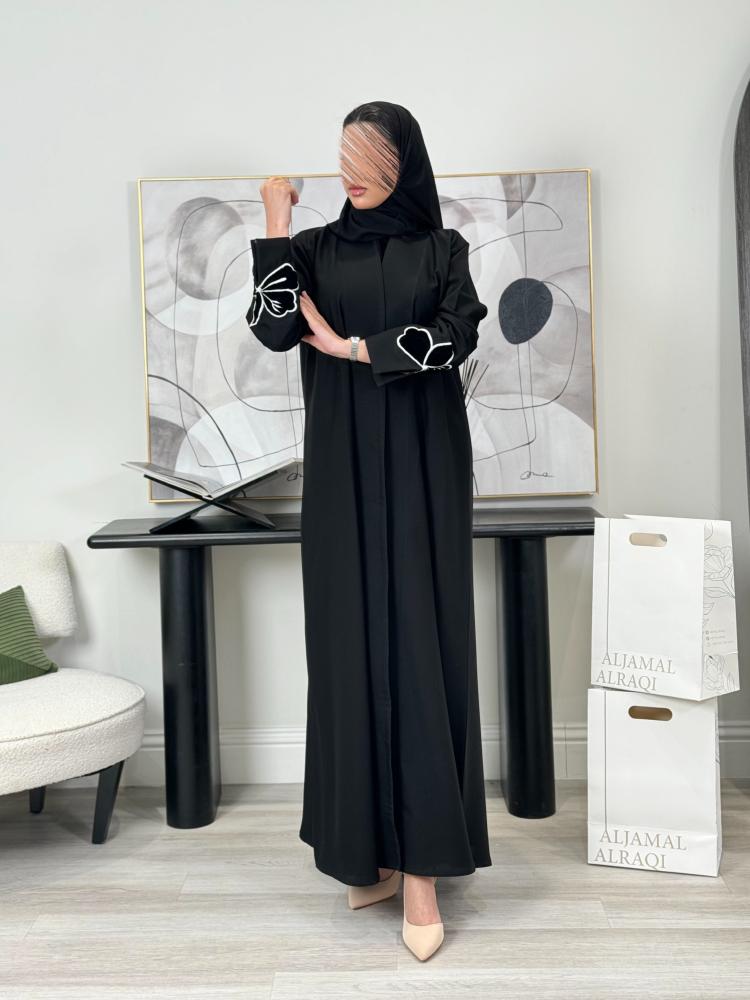 عباية سيما كريب الاناقة تطريز ورود مخمل - اسود