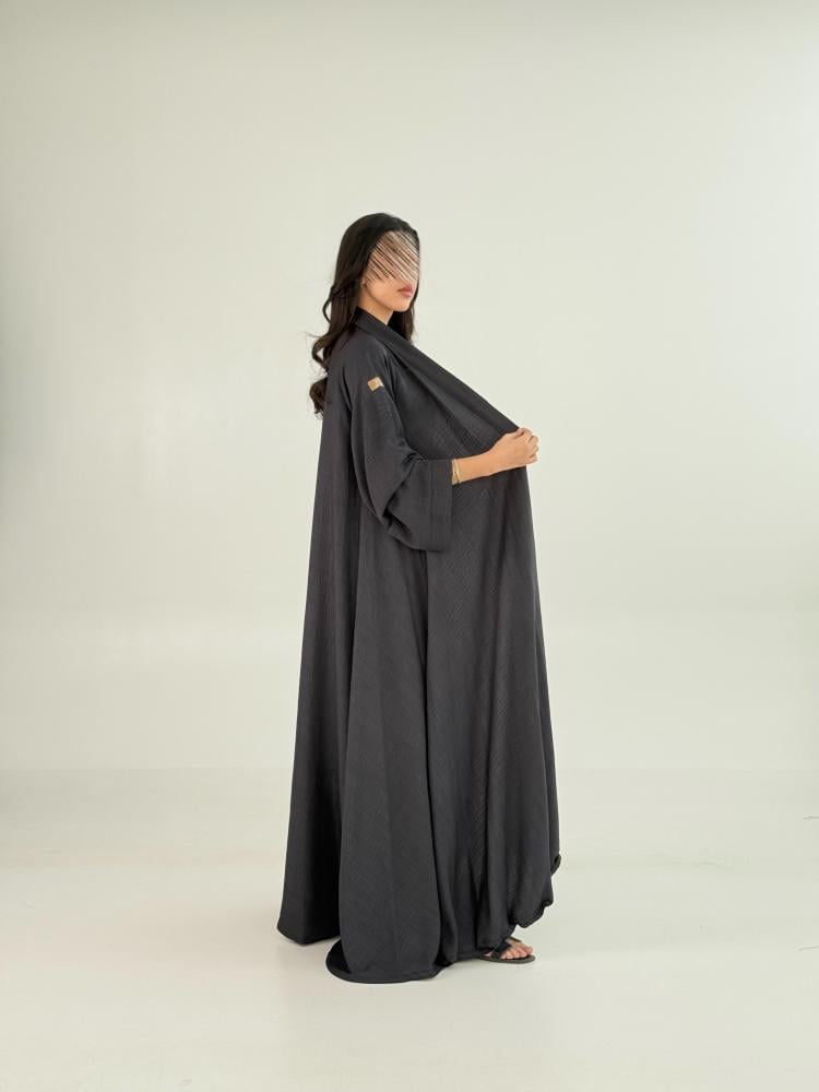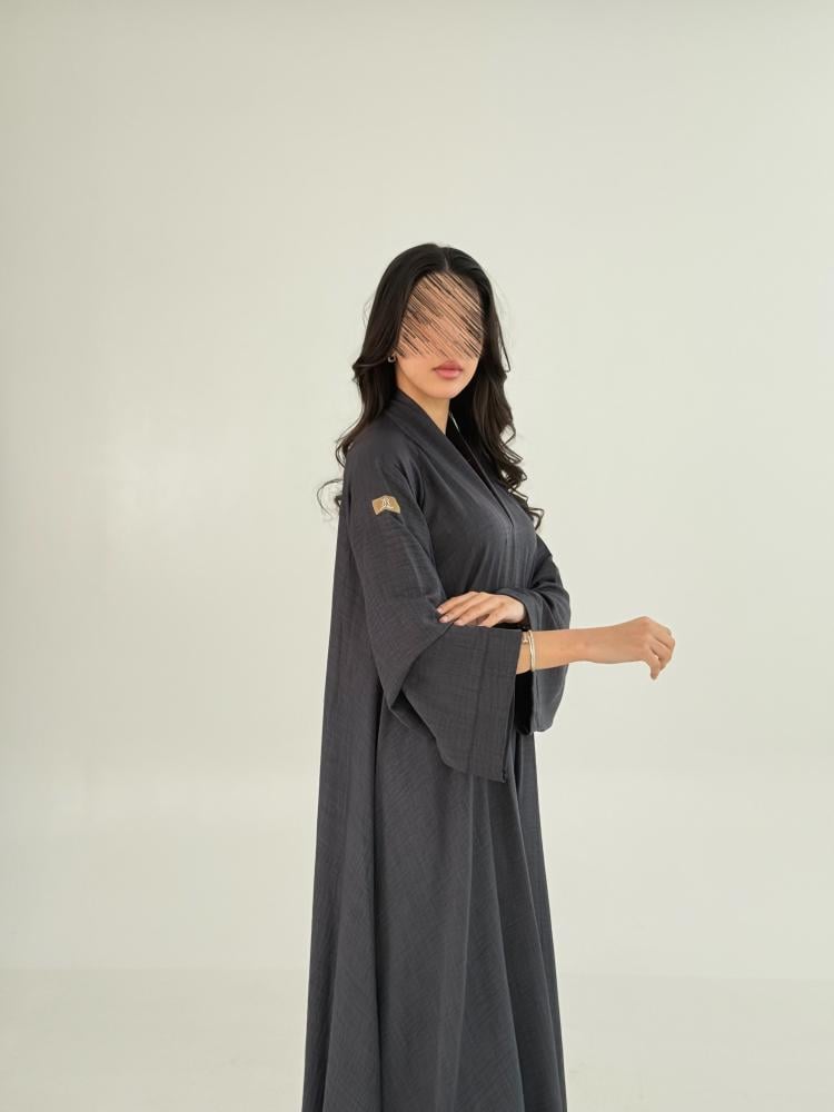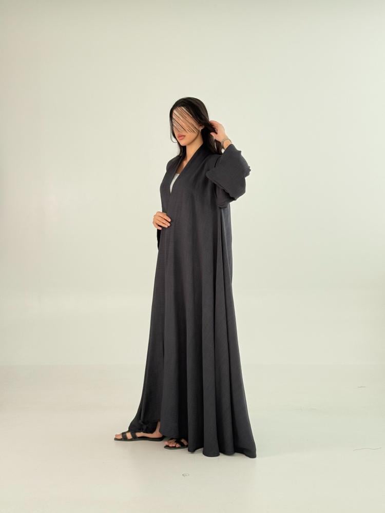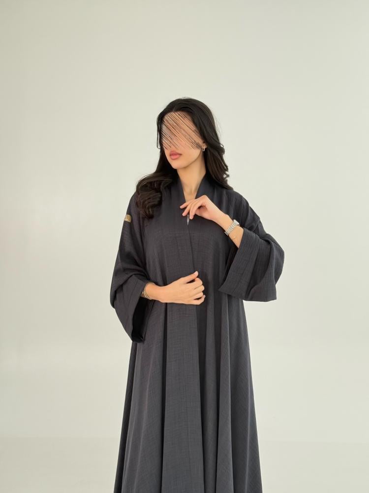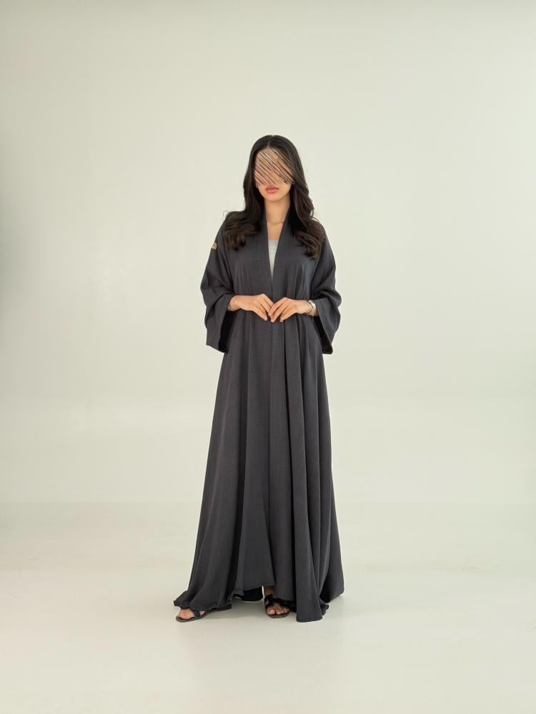 عباية شريهان بقماش كريب مغربي دبل كلوش رصاصي