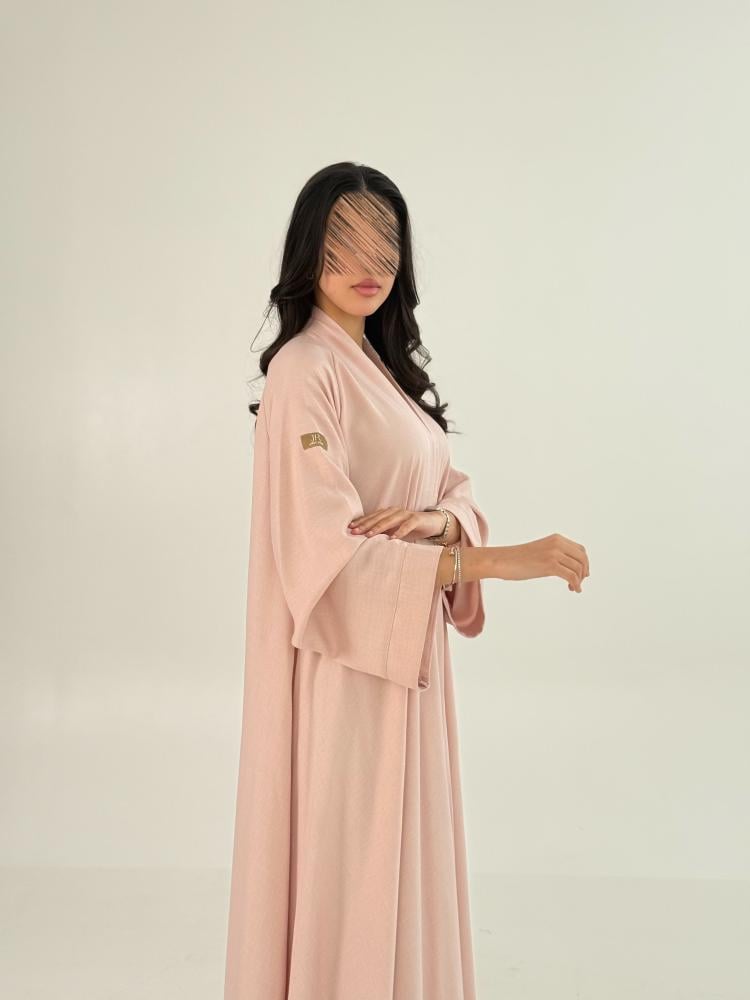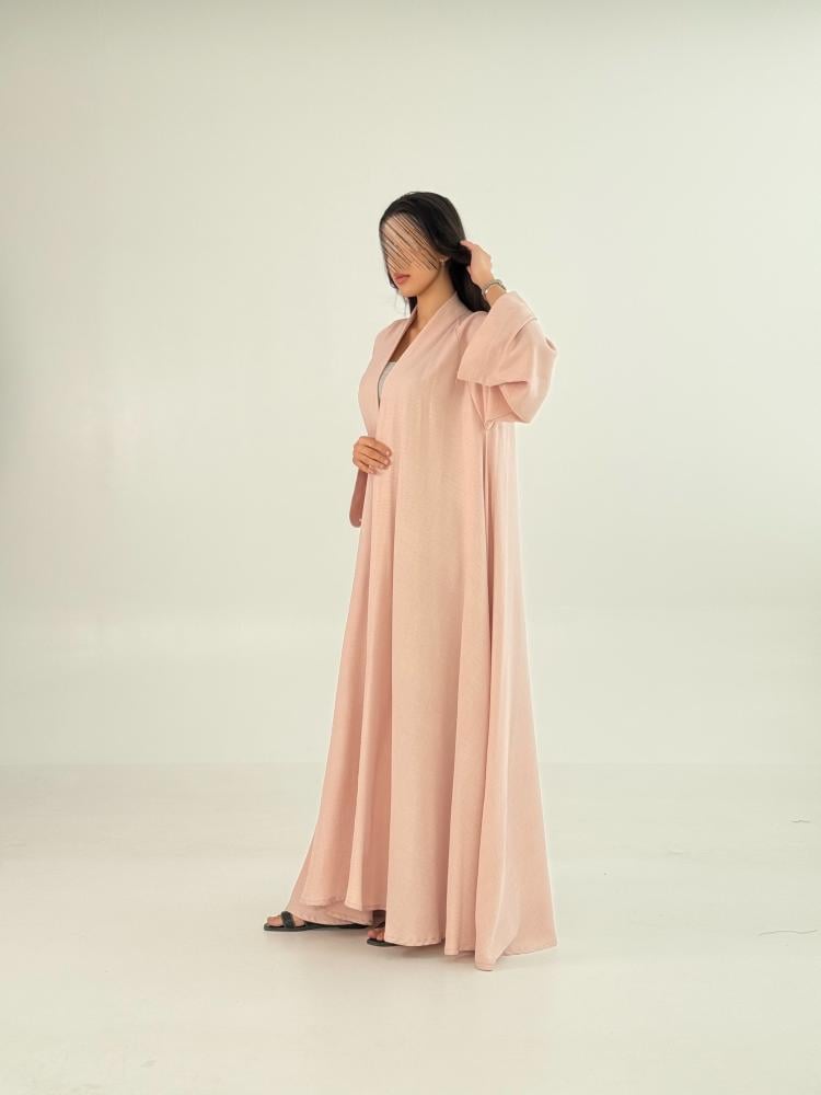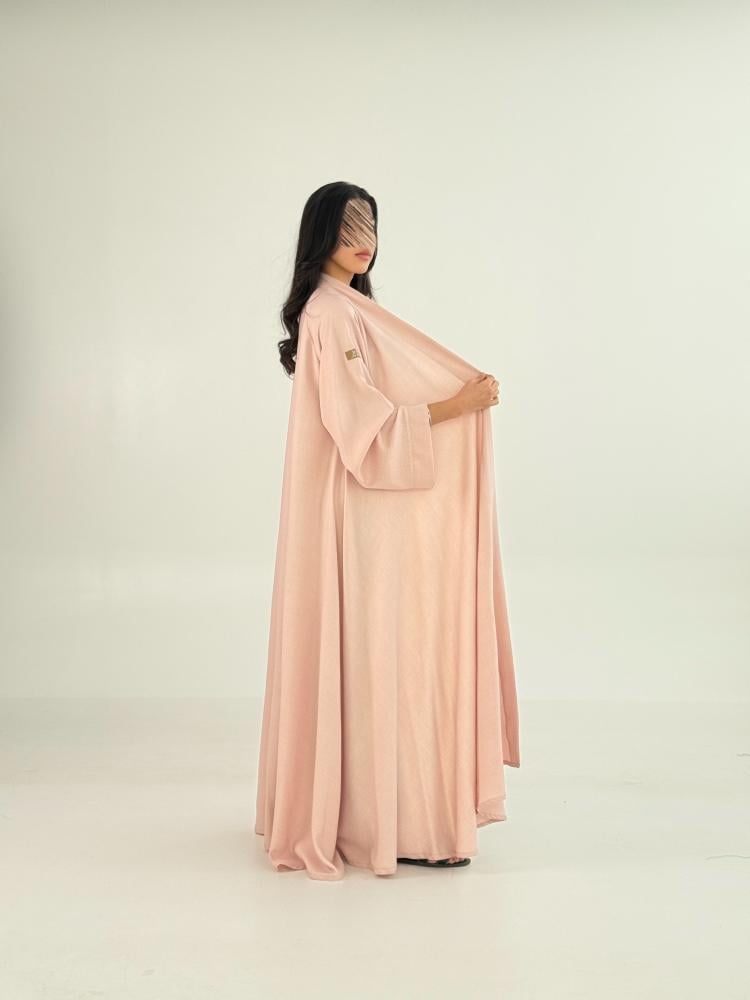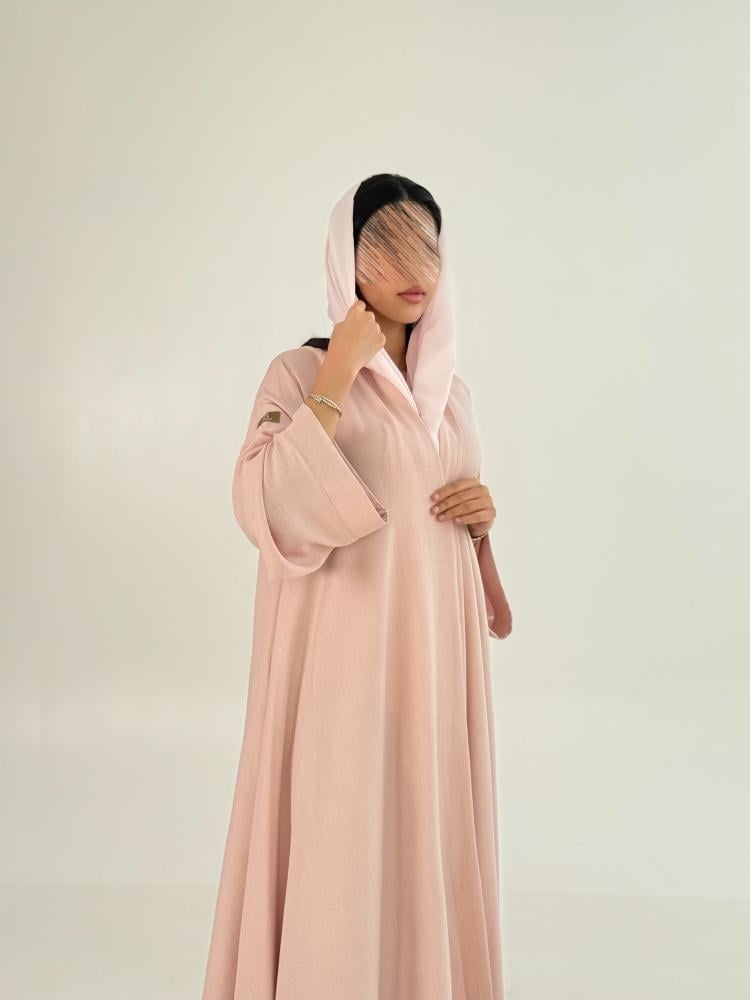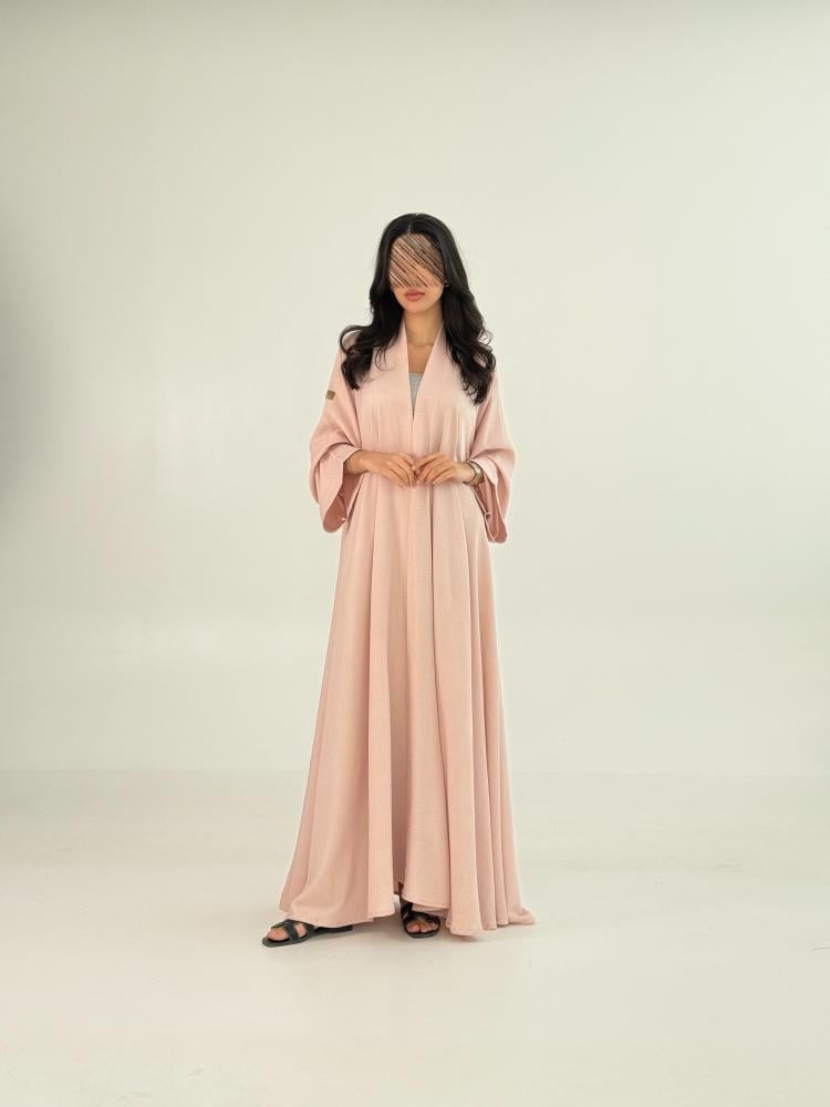 عباية شريهان بقماش كريب مغربي دبل كلوش وردي