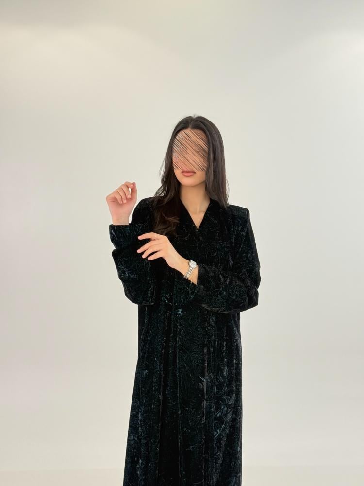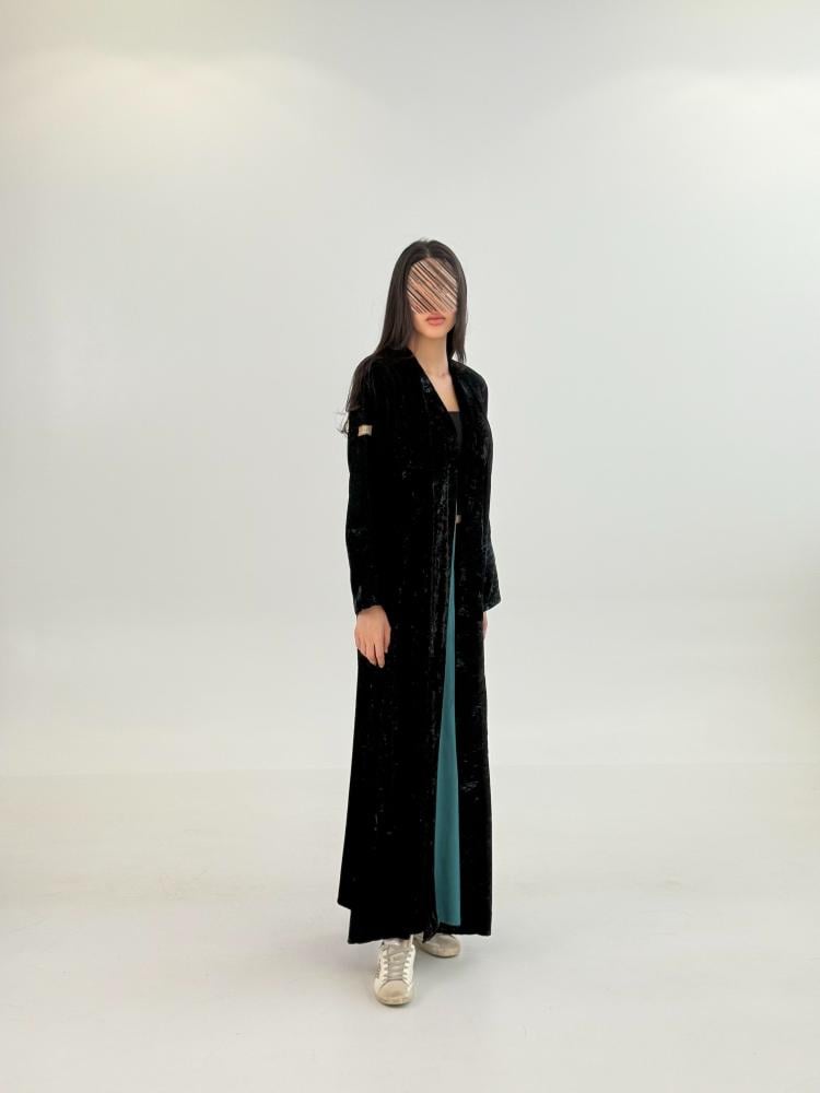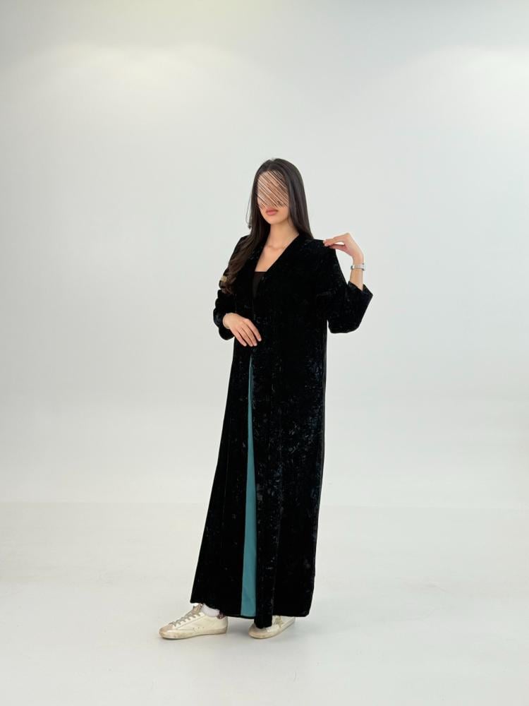 عباية علياء بقماش مخمل كوري مكسر تركوازي