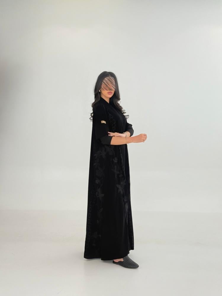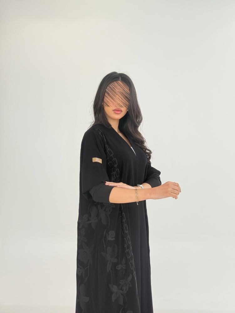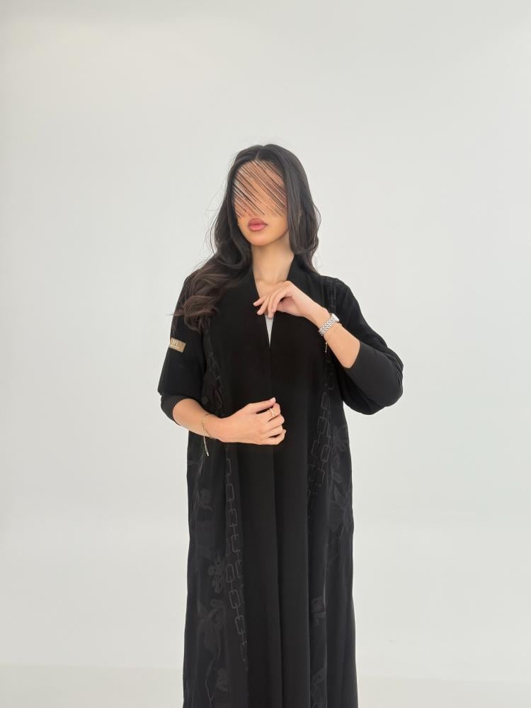 عباية عوالي بقماش كريب ملكي بتطريز انيق اسود