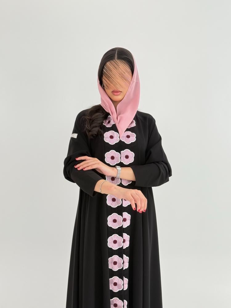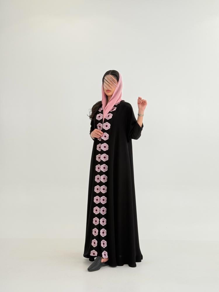 عباية غاليه بقماش انترنت كم استرتش تطريز  بينك دبل كلوش