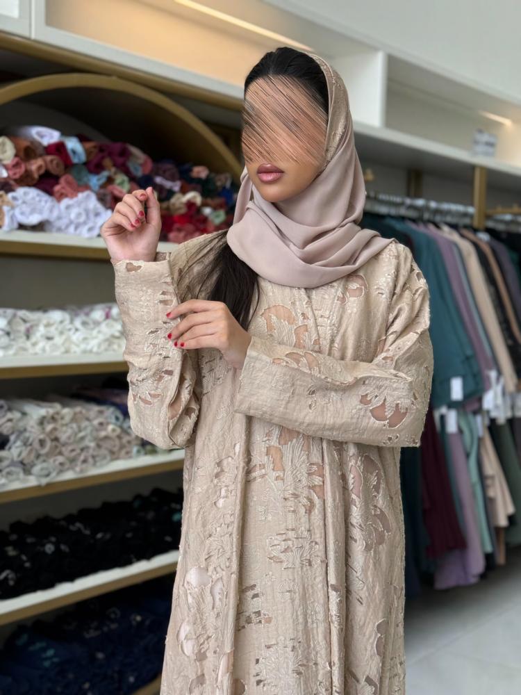 عباية فرات بقماش اورجنزا فلوك مخرم  بيج غامق