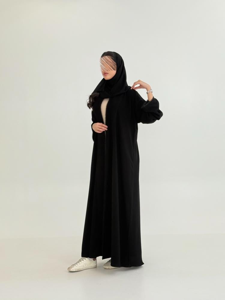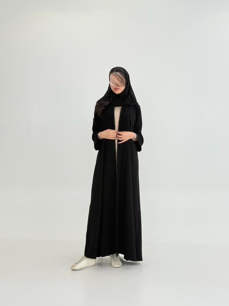 عباية لارين بقماش كريب ملكي مزين بقيطان اسود ناعمه
