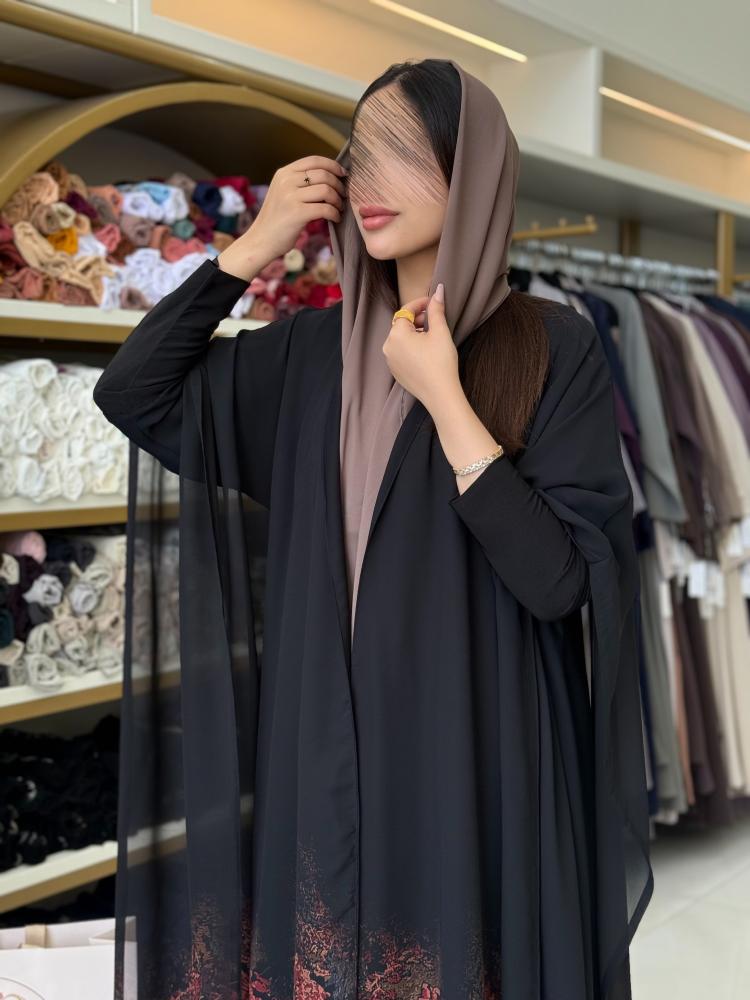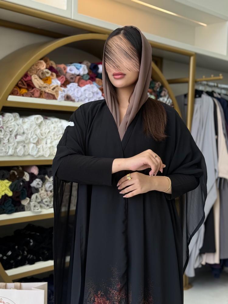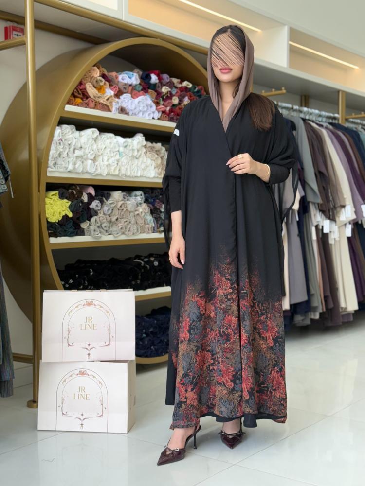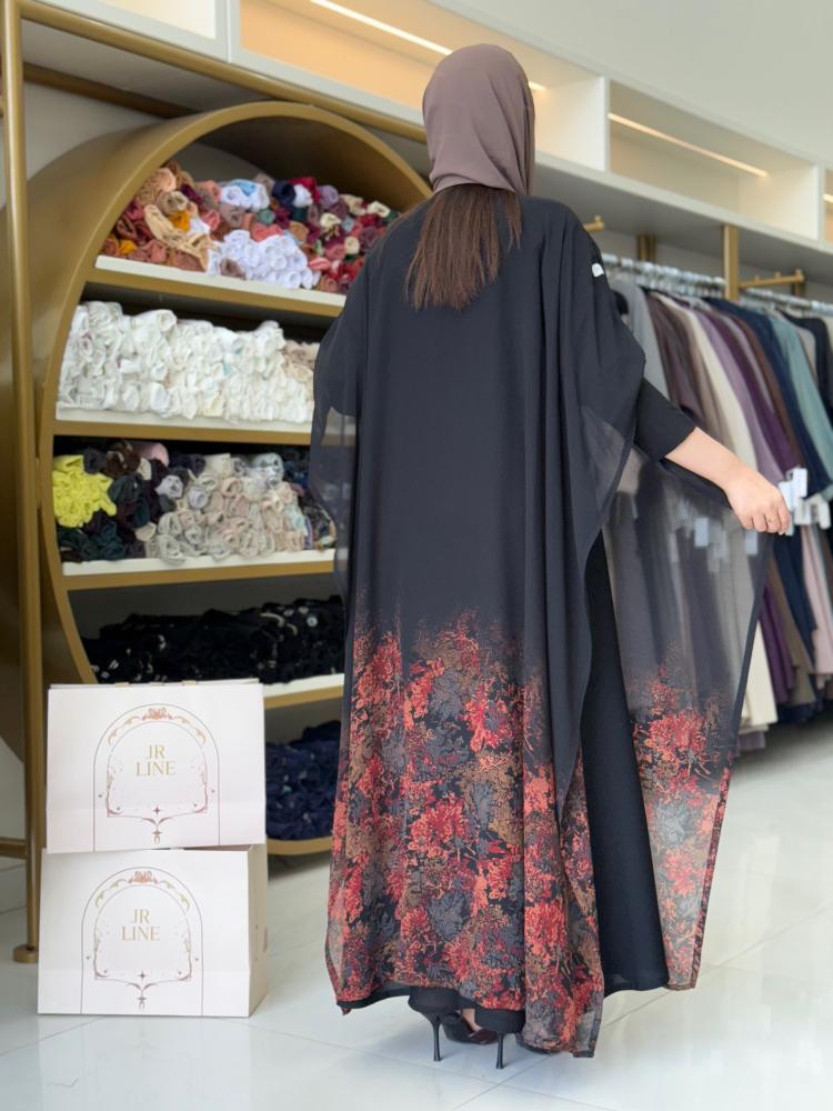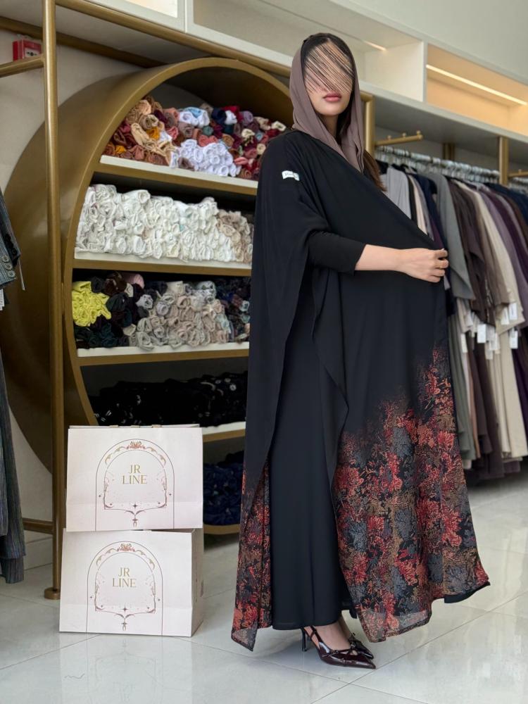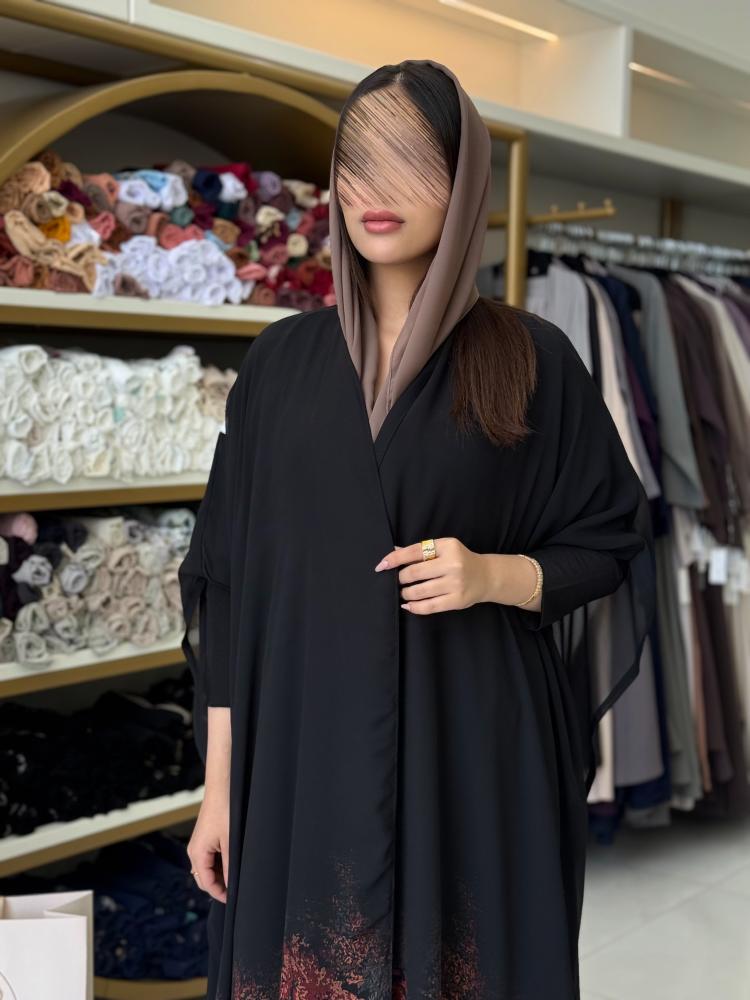 عباية لانا بقماش بلاك بيري مع شيفون برسم برغندي