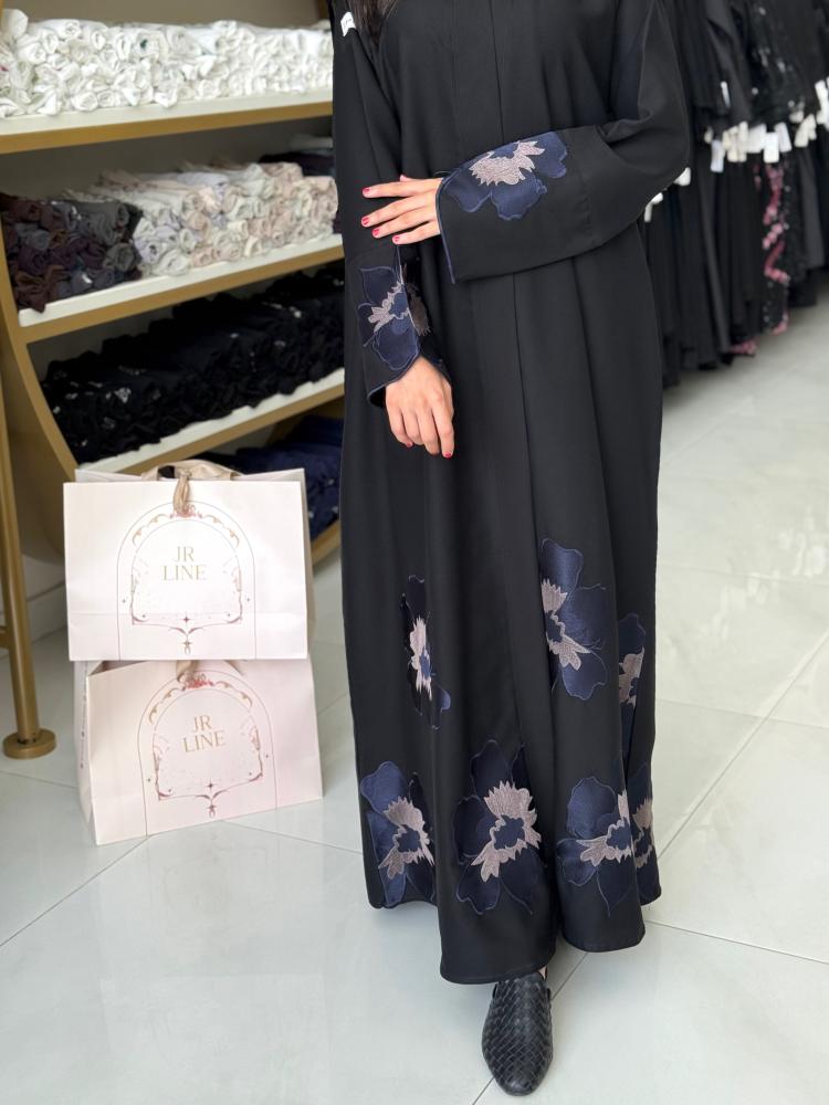 عباية ميلاس بقماش كريب الاناقة بتطريز ورود كحلي