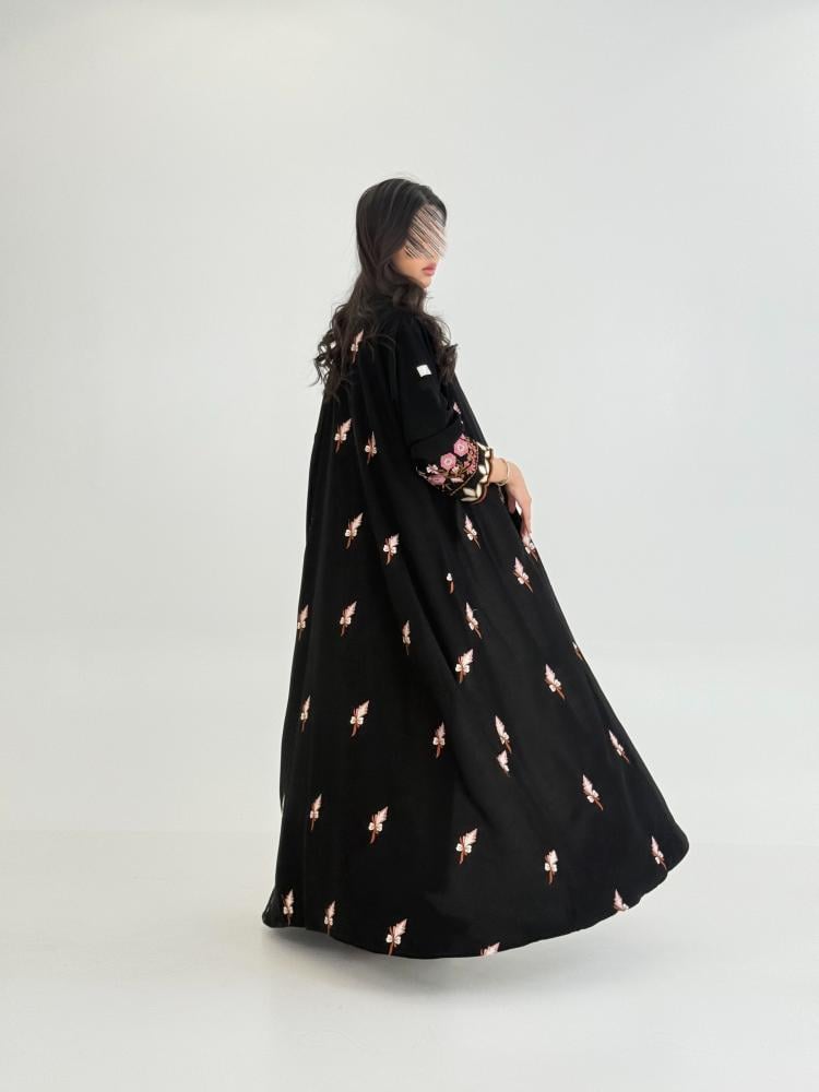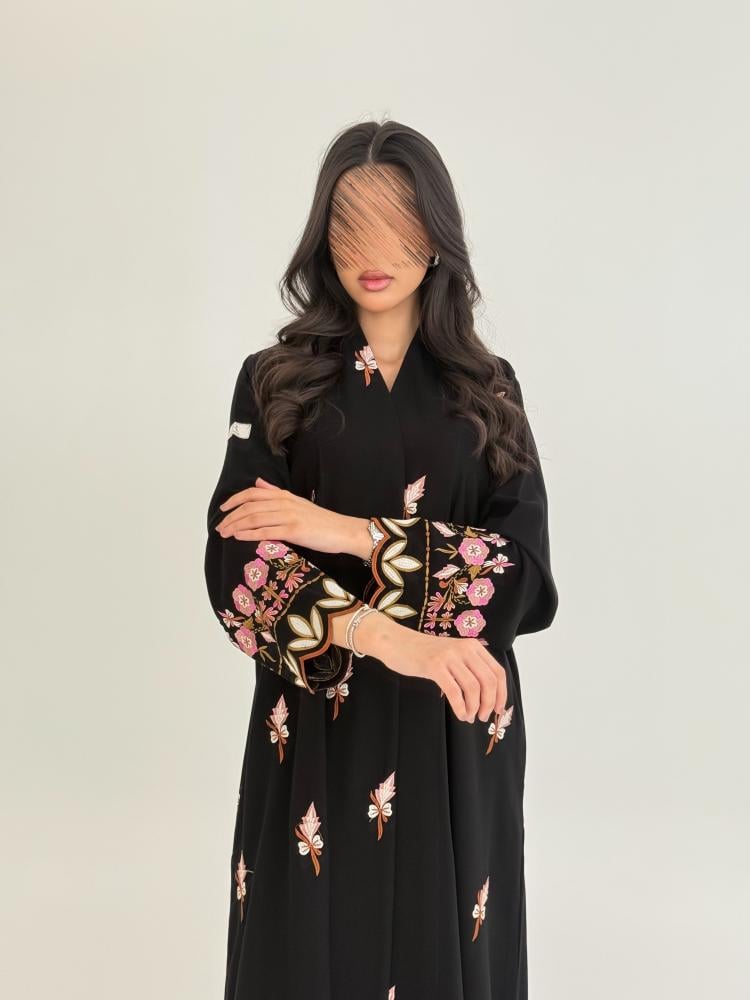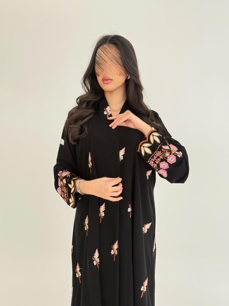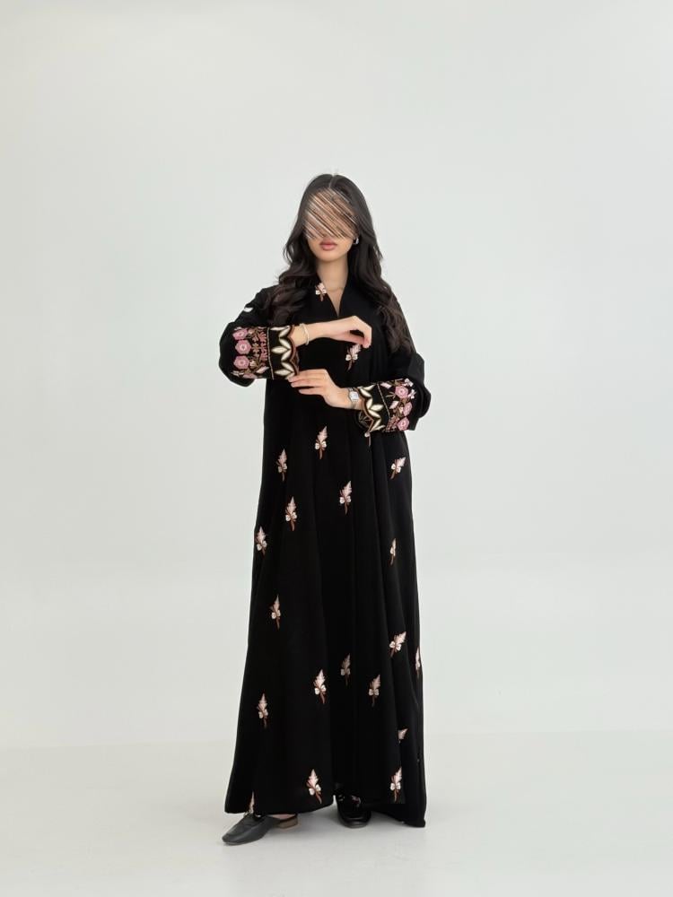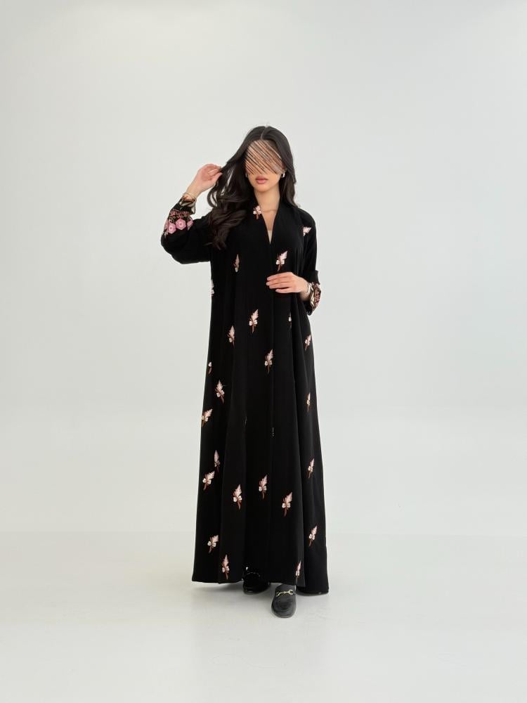 عباية ميلاف بقماش كريب ملكي بتطريز كامل