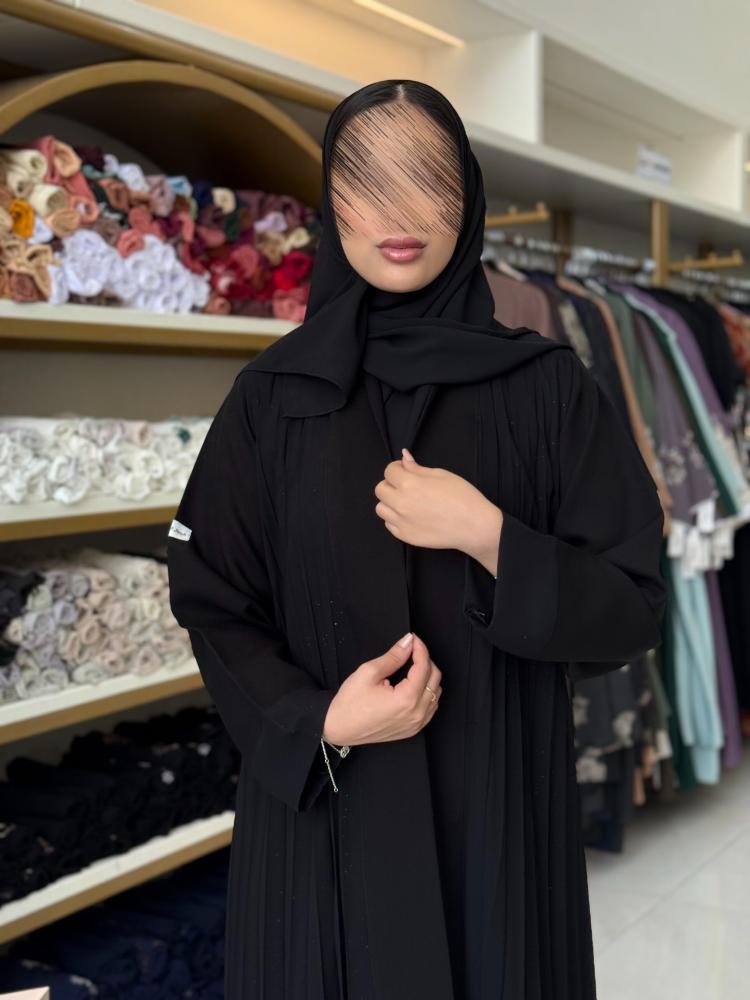 عباية نازلي كسرات شيفون اسود مع رمادي