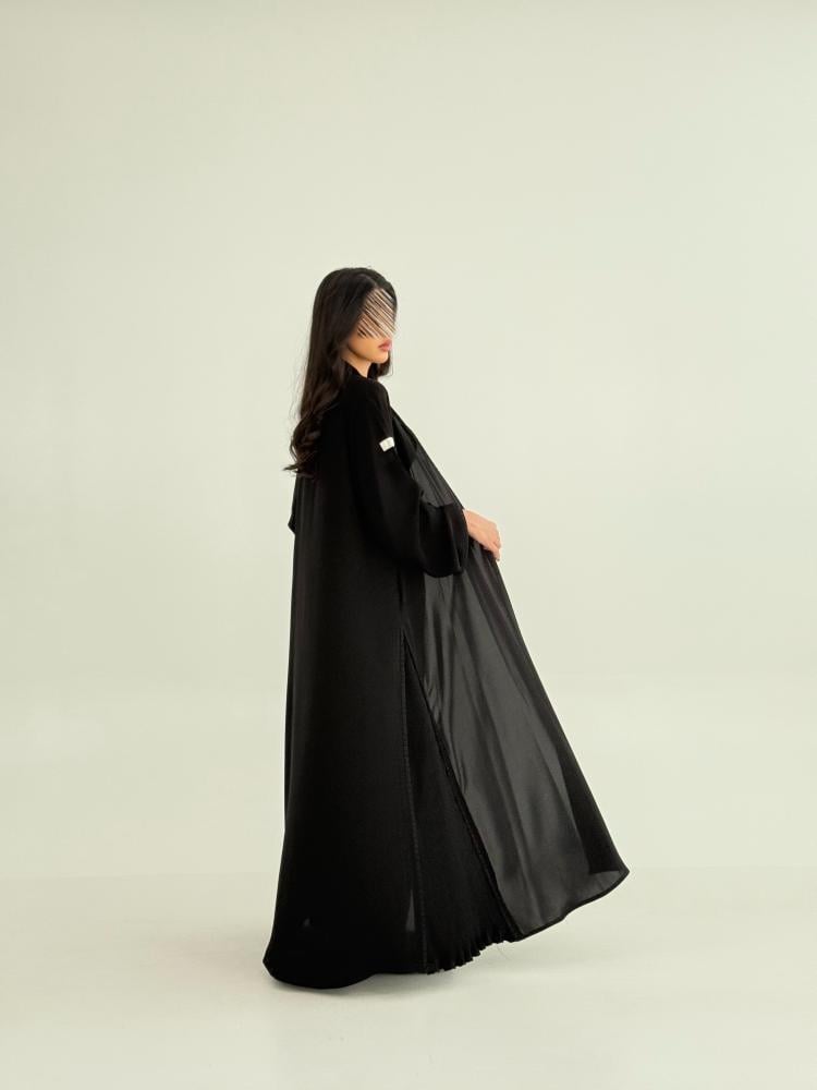 عباية نيلاء بقماش انترنت بتطريز مع كسرات جوانب اسود