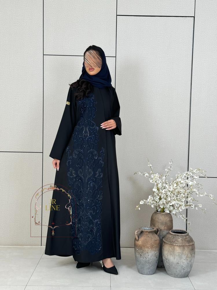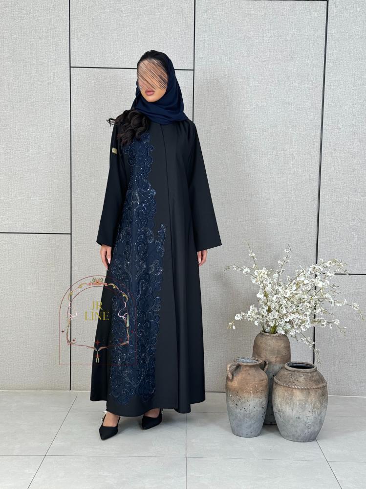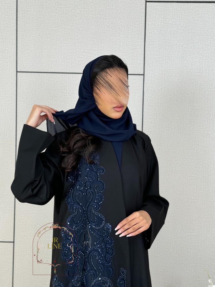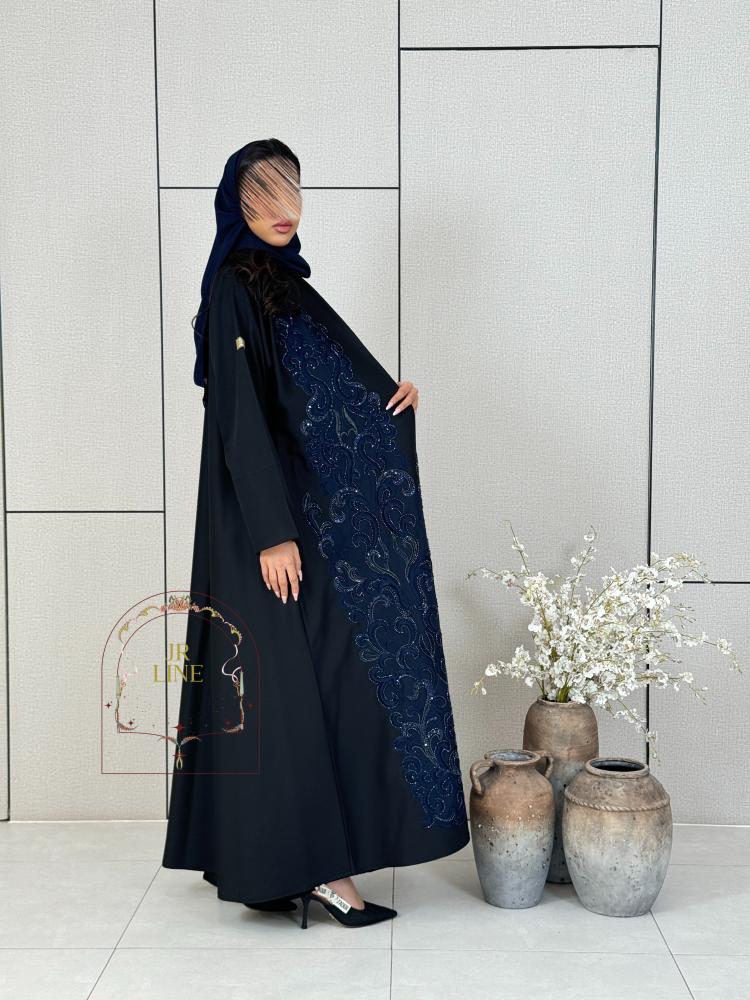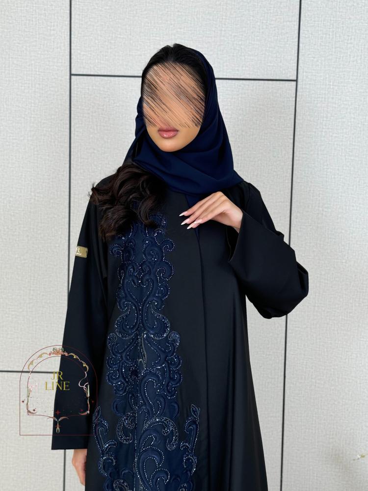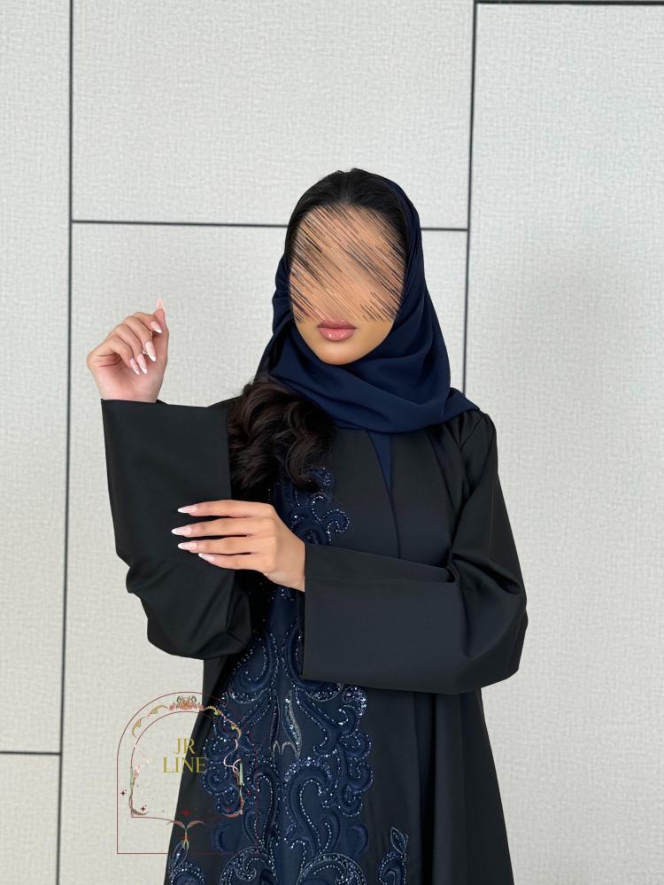 عباية هدى بقماش كريب باربي مزين بهدب وشك كحلي