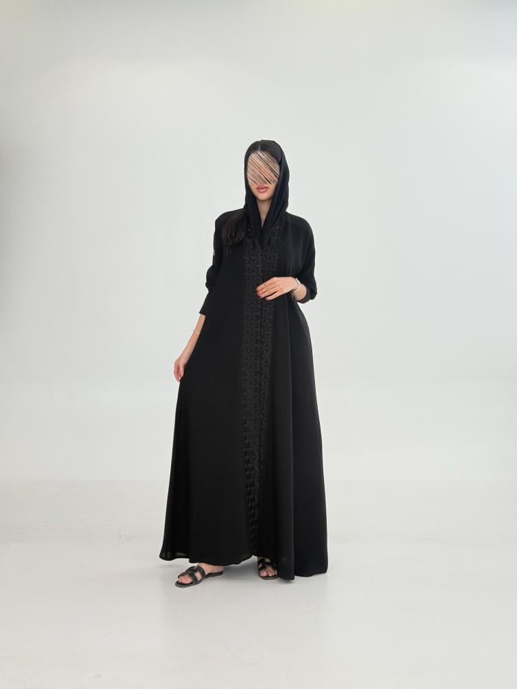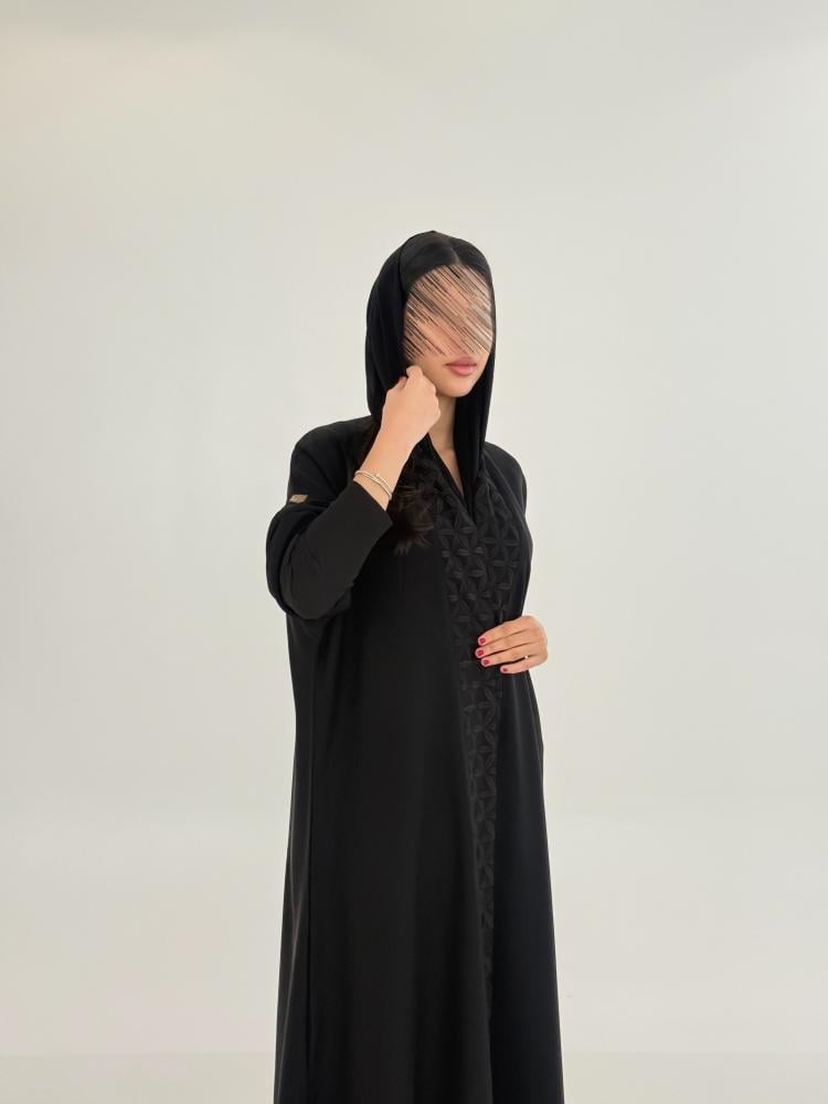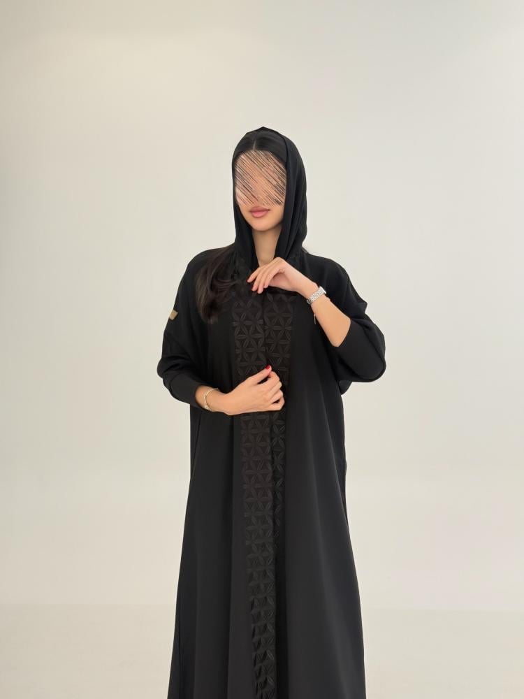 عباية وسين بقماش انترنت بتطريز نجوم كم استرتش اسود