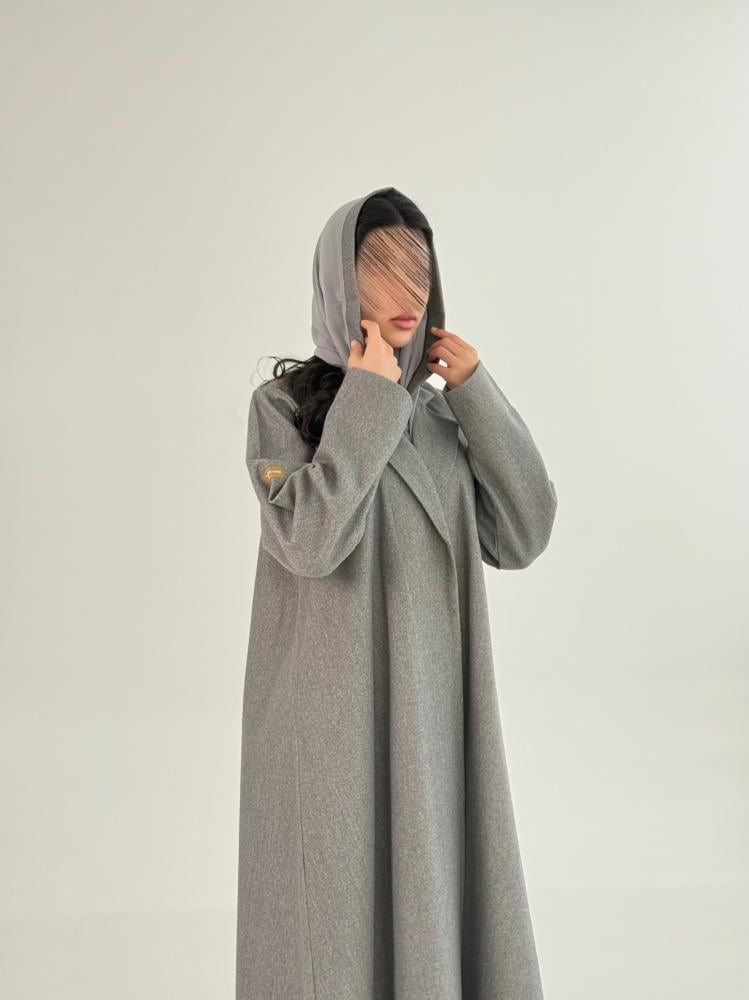 عباية يسرى بقماش جوخ شتوي رمادي فاتح