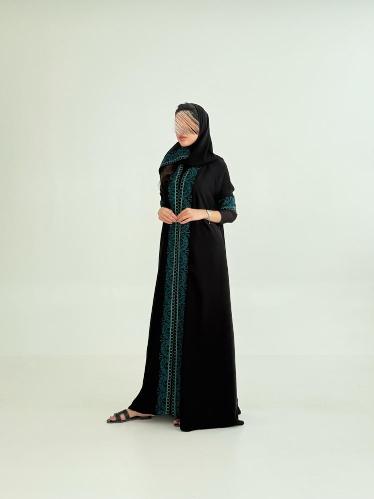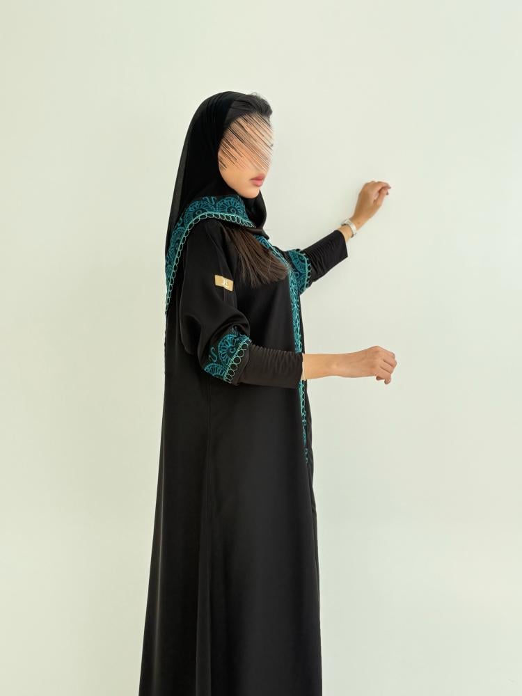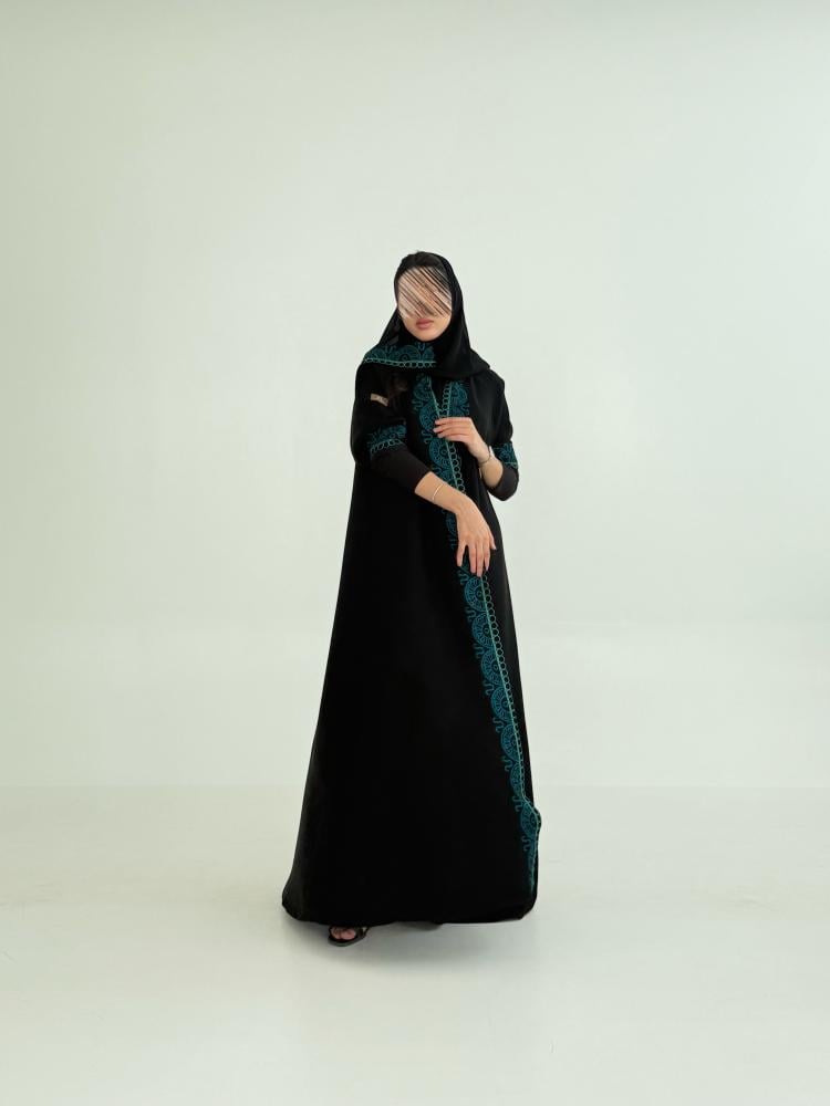 عبايه تسواهن بقماش انترنت نص كلوش تطريز بأناقة فاخرة تركوازي 2