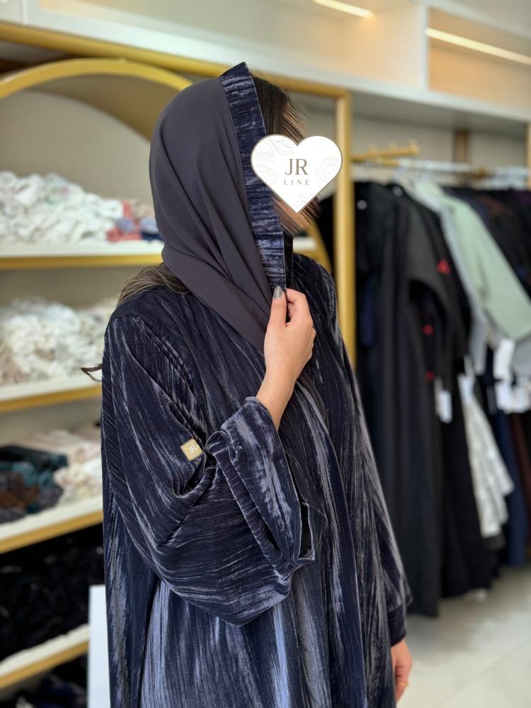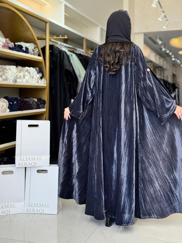 elegant collection - عباية شموخ كلوش مخمل كوري مكسر رمادي